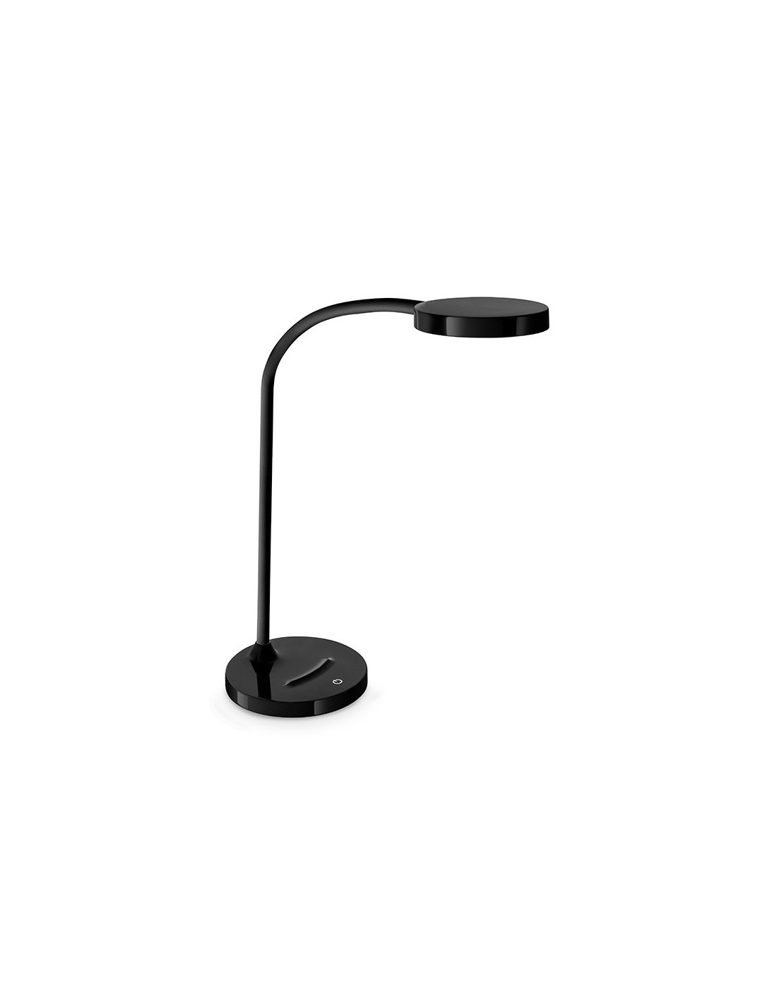 Lámpara de escritorio CEP. Fabricada en acero y ABS. Potencia de 5,46W y un flujo luminoso de 300 lúmenes. Temperatura de color fija de 3.000K (luz cálida), con un índice de reproducción cromática (CRI) de 80 para una correcta percepción de los colores. Botón de control para brillo regulable. Cabeza orientable que permite dirigir la luz con precisión. Conexión mediante enchufe convencional. Vida útil estimada de 50.000 horas. Certificado energético G. Medidas: 550x600 mm. Peso: 1.020 gramos. Color negro.