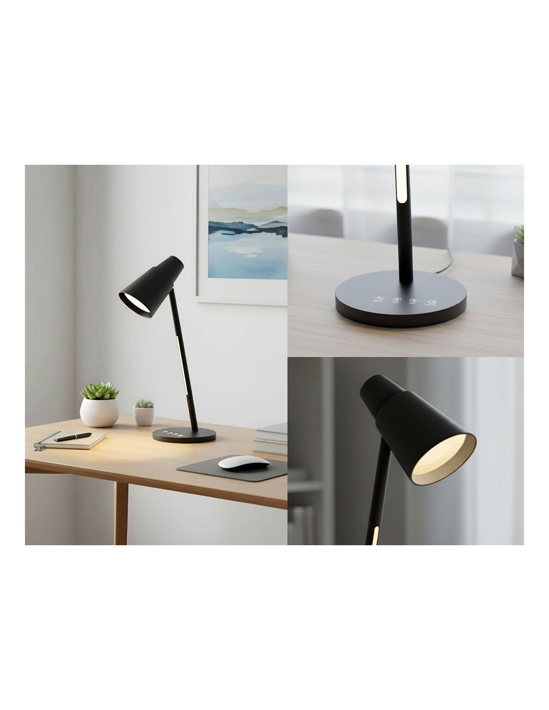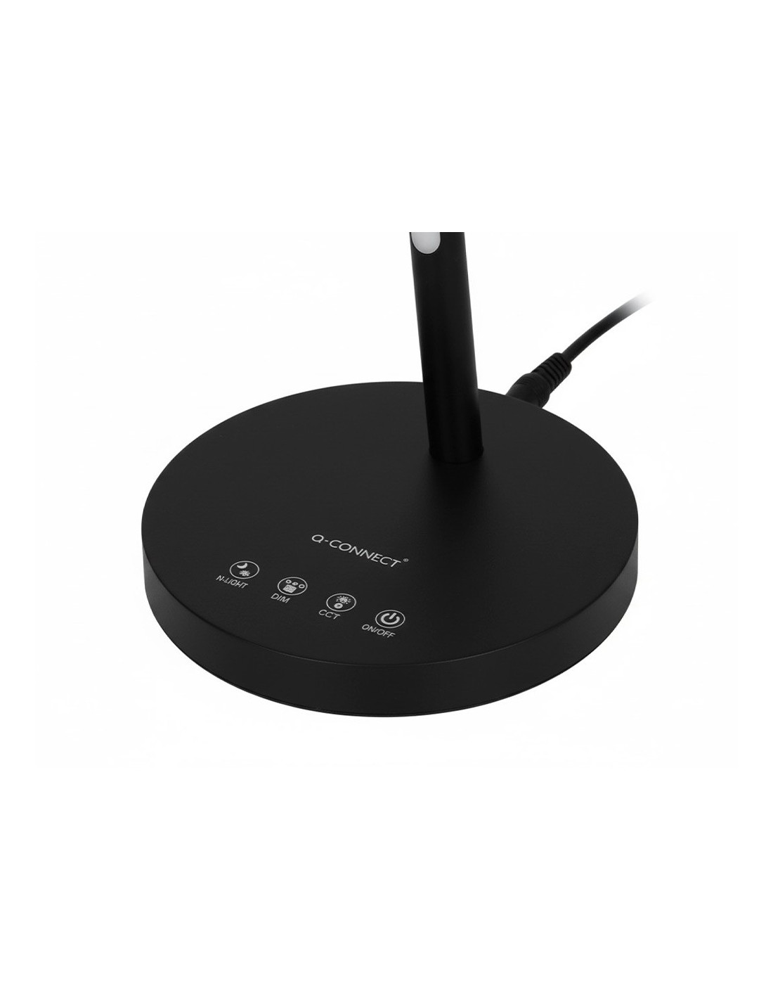 Lámpara de escritorio Q-Connect. Fabricada en ABS y aluminio con acabado mate. Potencia de 6W, 32 LEDs y un flujo luminoso de 360 lúmenes. Temperatura de color (CCT) ajustable: 3000K (luz cálida), 4000K (luz neutra) y 6300K (luz fría), con un índice de reproducción cromática (CRI) de 80 para unailuminación precisa. Sensor táctil para encendido/apagado. Incluye funció n luz nocturna para ambientes relajados. Cabeza orientable con 1 articulación. Cable de 130 mm. Certificados CE y RoHS. Medidas 146x132x297 mm. Peso698 gramos.)