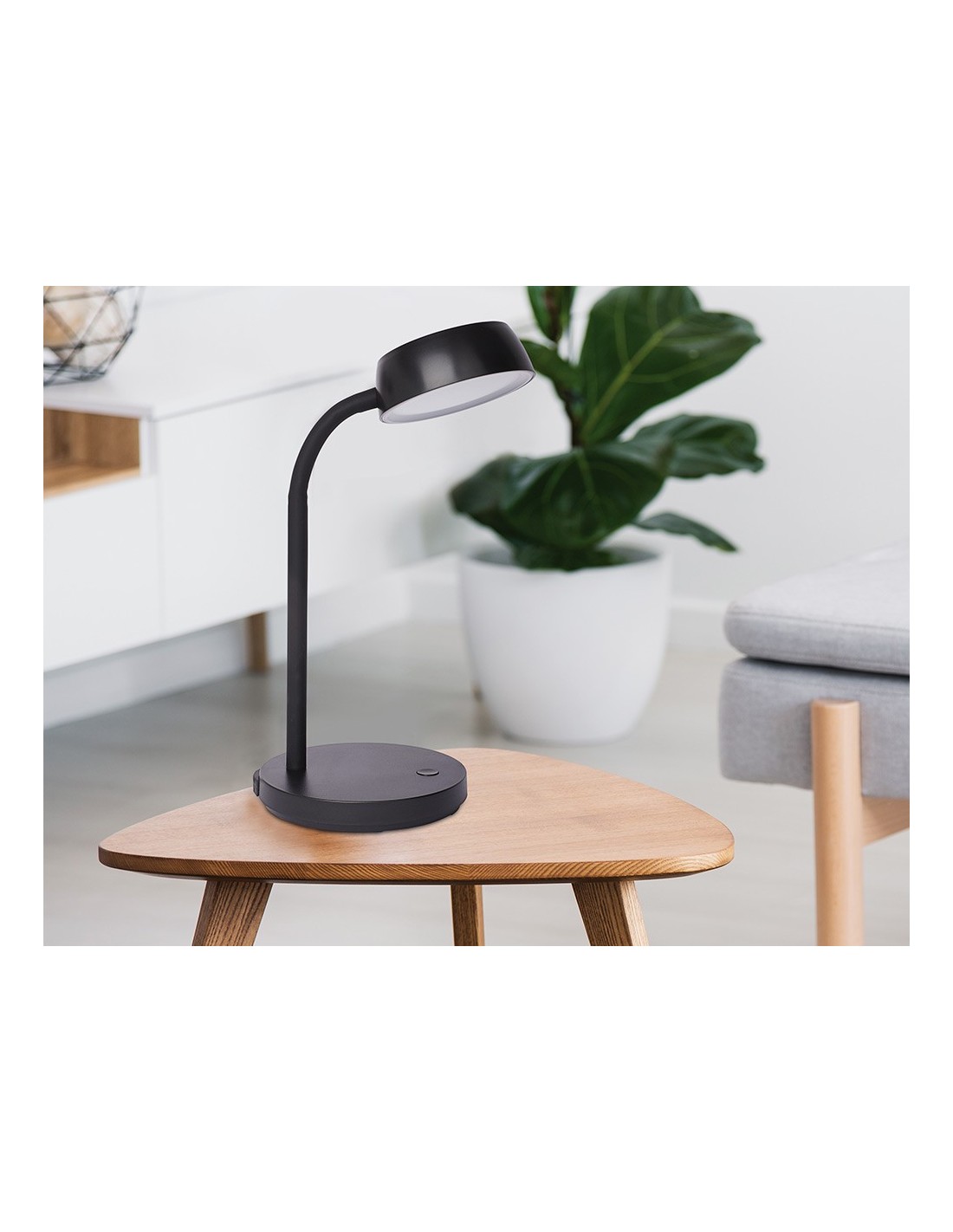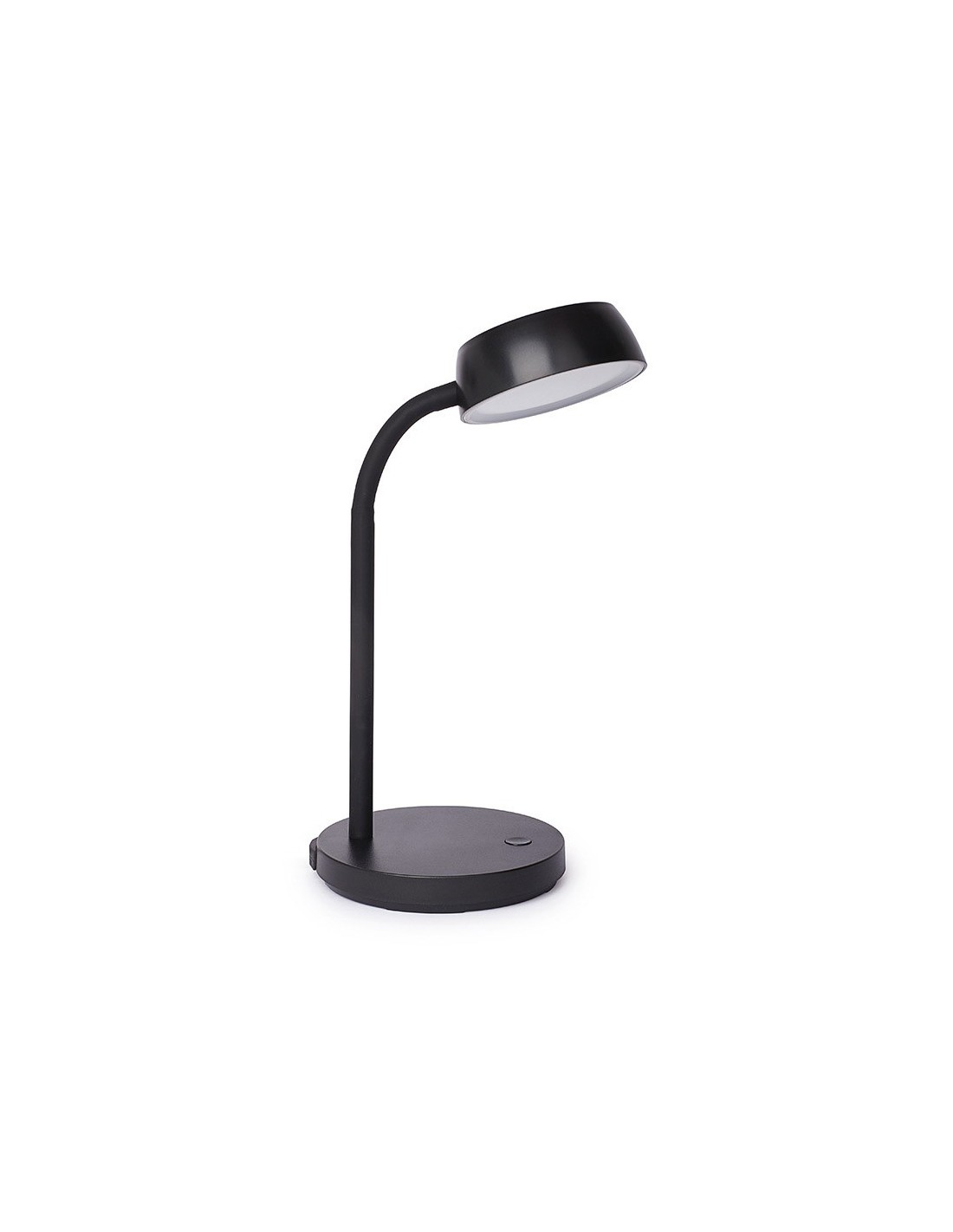 Lámpara de escritorio MAUL. LED. Fabricada en plástico. Potencia de 5W y un flujo luminoso de 585 lúmenes. Temperatura de color fija de 3.000K (luz cálida), con un índice de reproducción cromática (CRI) de 81 para una correcta percepción de los colores. Brazo y cabezal giratorios. Conexión mediante enchufe convencional. Vida útil estimada de 15.000 horas. Longitud de cable 1.600 mm. Medidas: 210x150x300 mm. Peso: 650 gramos. Color negro.