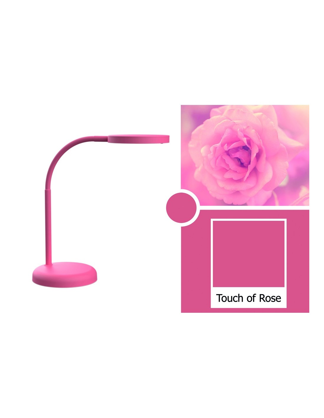 Lámpara de escritorio MAUL. LED. Fabricada en plástico. Potencia de 5W y un flujo luminoso de 769 lúmenes. Temperatura de color fija de 3.000K (luz cálida), con un índice de reproducción cromática (CRI) de 81 para una correcta percepción de los colores. Brazo y cabezal giratorios. Conexión mediante enchufe convencional. Vida útil estimada de 15.000 horas. Longitud de cable 1.800 mm. Medidas: 260x137x335 mm. Peso: 810 gramos. Color rosa.