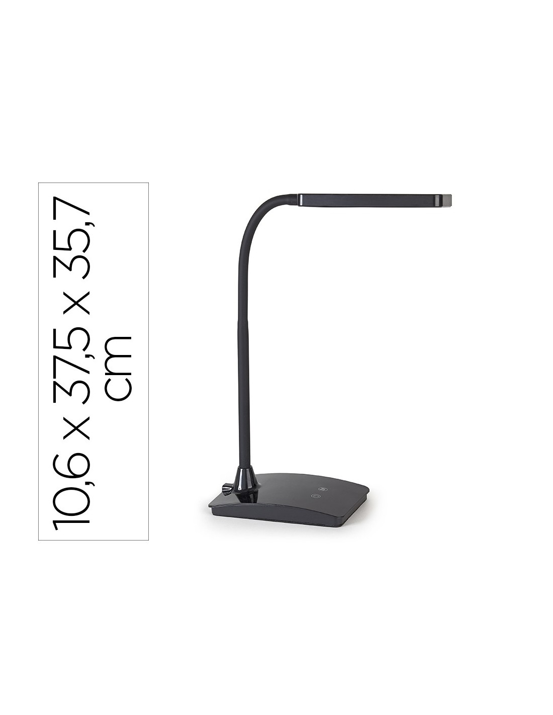 Lámpara de escritorio MAUL. LED. Fabricada en plástico. Potencia de 5W y un flujo luminoso de 616 lúmenes. Temperatura de color ajustable entre 3.000K (luz cálida) y 6.500K (luz fría), con un índice de reproducción cromática (CRI) de 83 para una correcta percepción de los colores. Panel táctil para ajustar el color, doble brazo y cabezal giratorios y regulador de intensidad para ajustar el brillo. Conexión mediante enchufe convencional. Vida útil estimada de 50.000 horas. Longitud de cable 1.700 mm. Medidas: 265x106x375 mm. Peso: 670 gramos. Color negro.