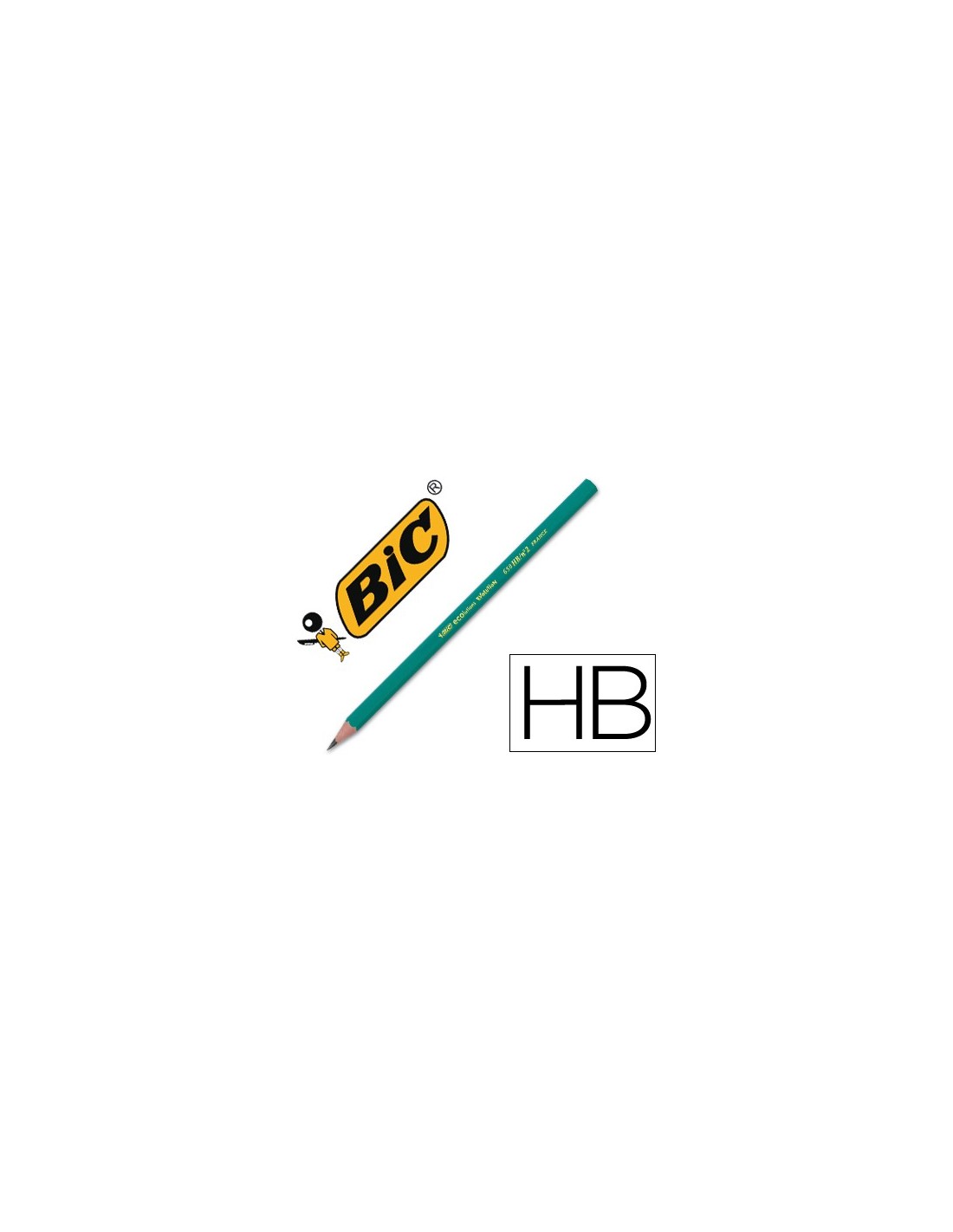 Lápiz de grafito con graduación 2HB. Cuerpo hexagonal de color verde. Certificado NF Enviroment. Mina robusta y resistente, no se astilla por rotura violenta. Hecho de resina con un 57% de material reciclado.