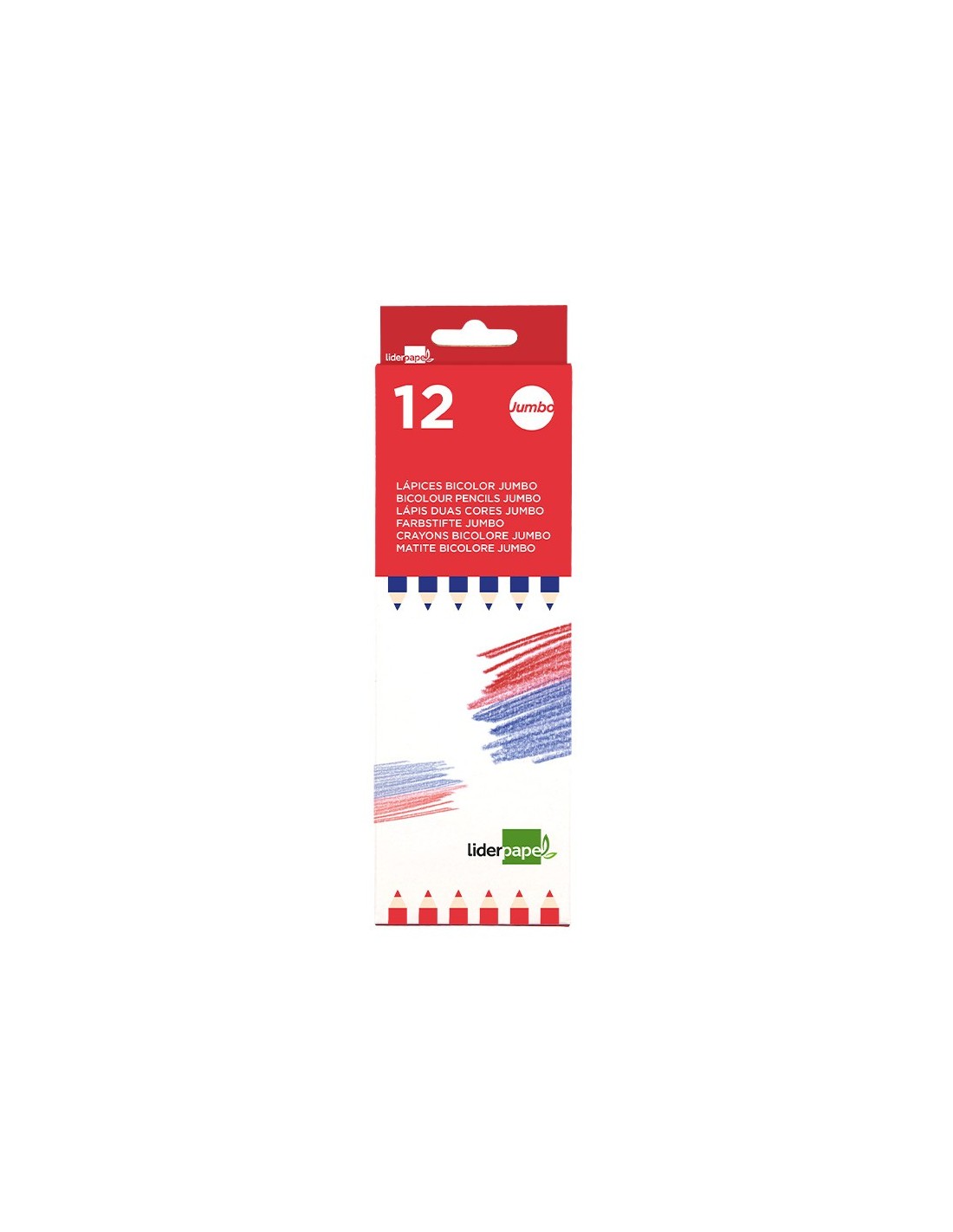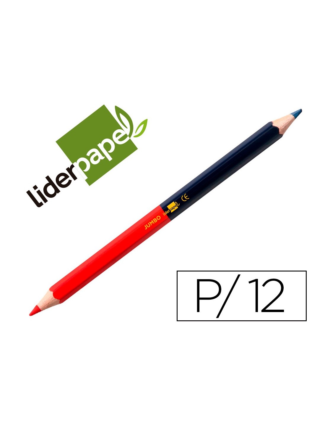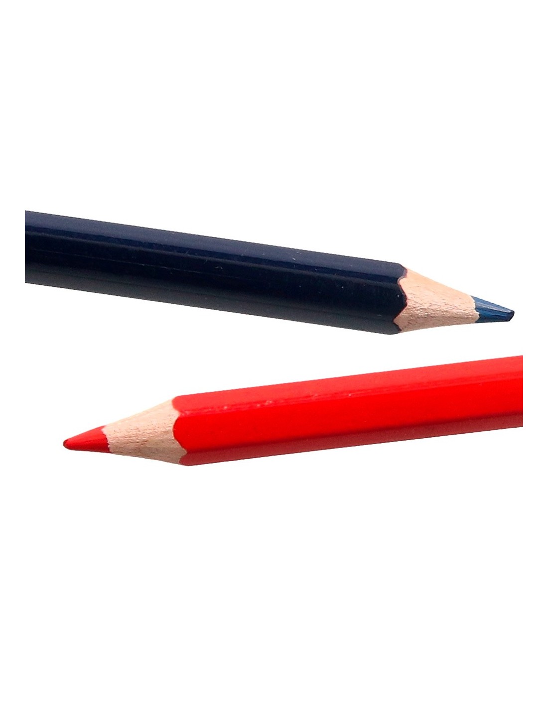 Madera de gran calidad, con mina ultrarresistente. 2 puntas de dos colores: una azul y otra roja.