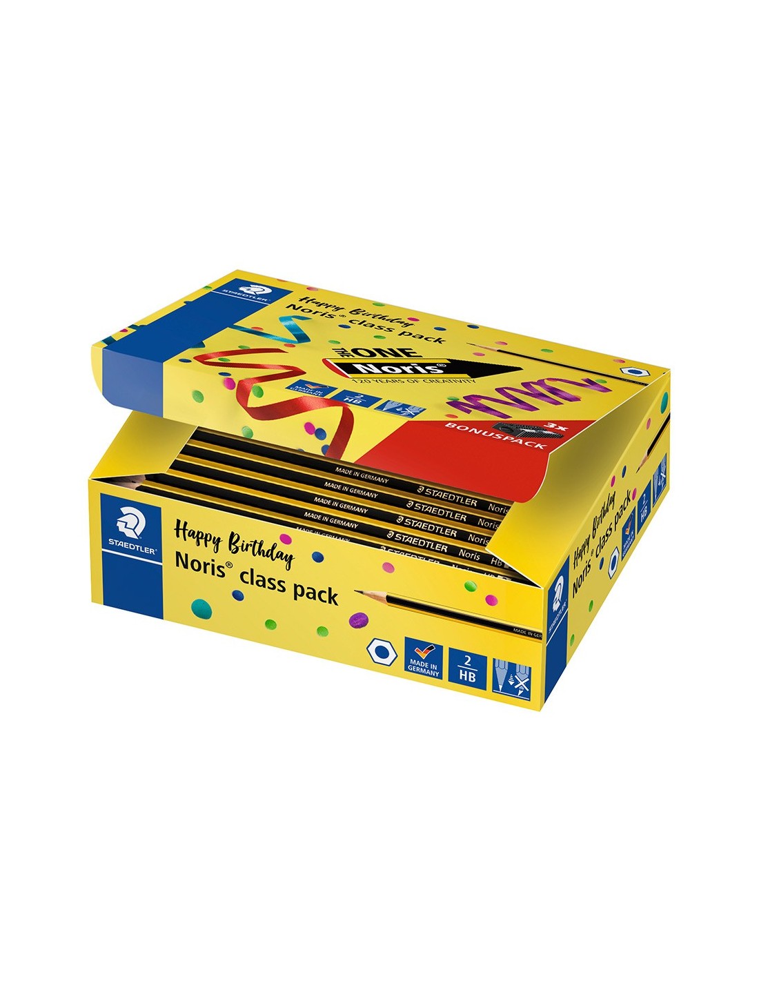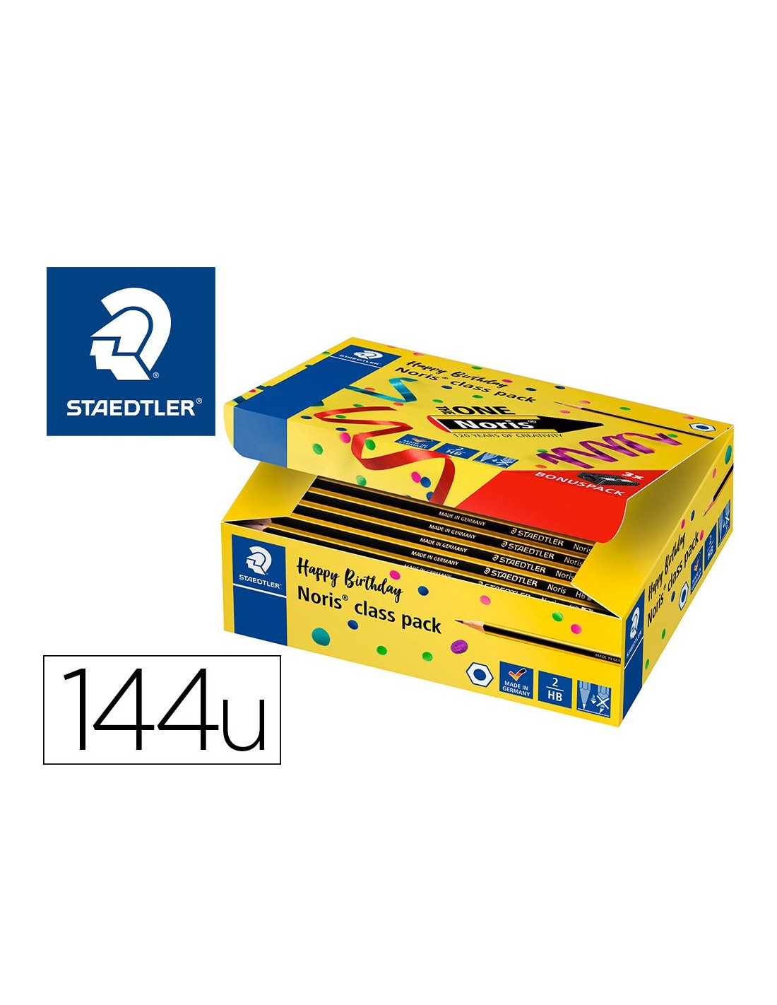 Lápiz de grafito con cuerpo hexagonal. Gran resistencia a la rotura gracias a la especial formulación de la mina y a su doble encoladura. Fabricado con madera procedente de bosques de gestión sostenible. Nº 2. Dureza HB. Incluye 144 lápices.