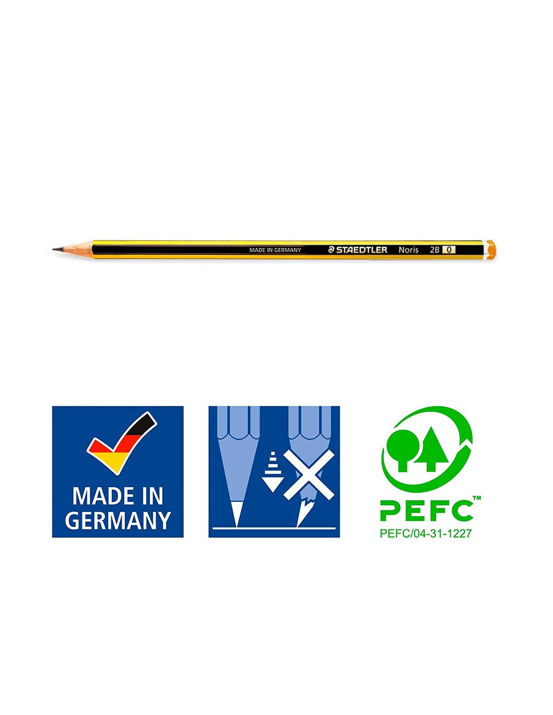 El encolado especial de la mina y la madera en toda la longitud del lápiz, evitan que las minas se rompan al afilarlas. Lápiz ecológico, con madera procedente de bosques de gestión sostenible.