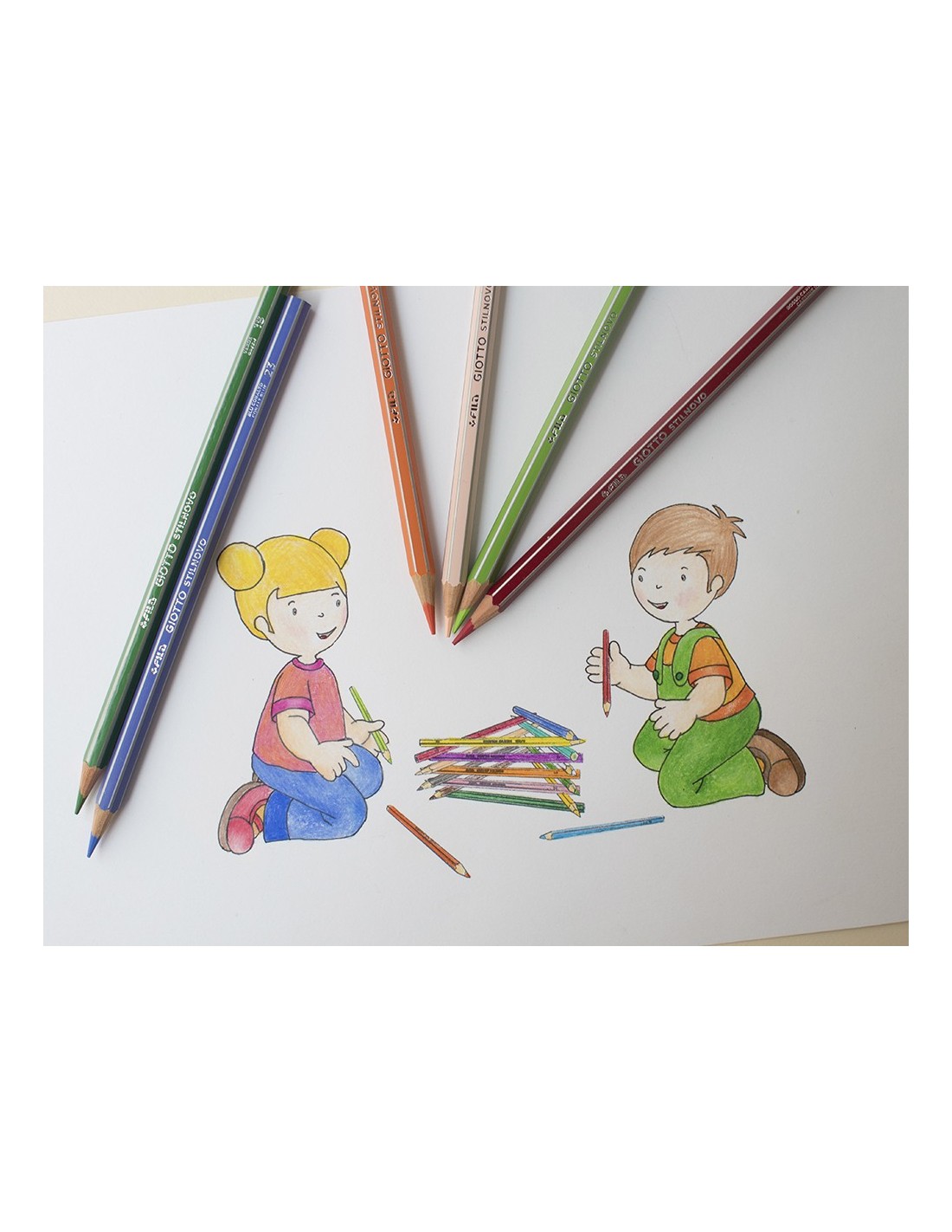 Lápices de colores intensos. Con recuadro en lateral para escribir el nombre. Caja de cartón. Altura del lápiz: 175 mm. Diámetro del lápiz: 7 mm. Diámetro de la mina: 3,3 mm.