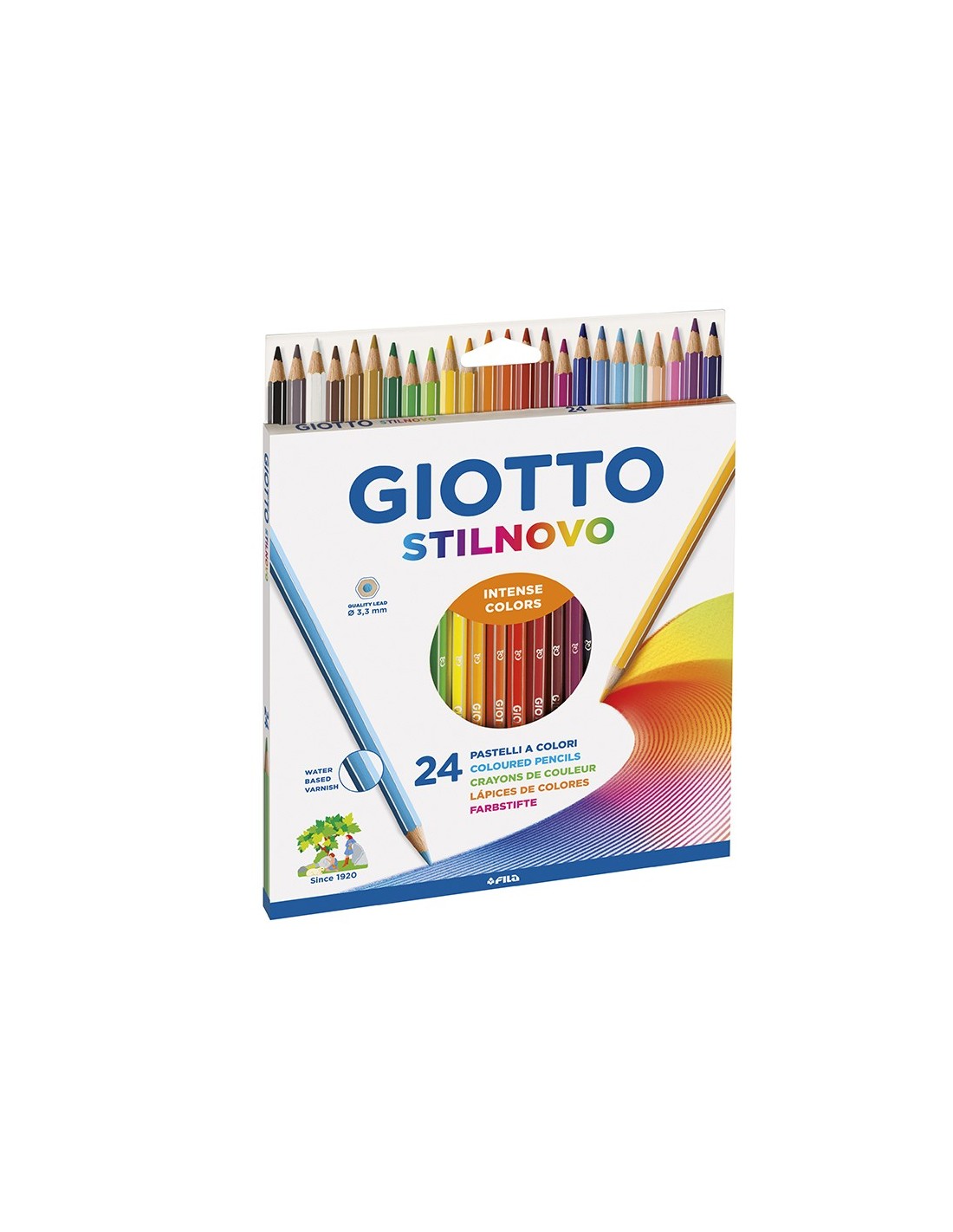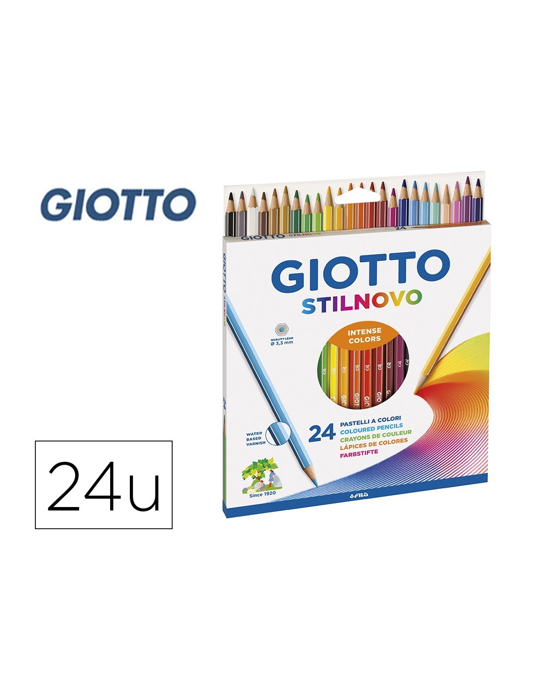 Lápices de colores intensos. Con recuadro en lateral para escribir el nombre. Caja de cartón. Altura del lápiz: 175 mm. Diámetro del lápiz: 7 mm. Diámetro de la mina: 3,3 mm.