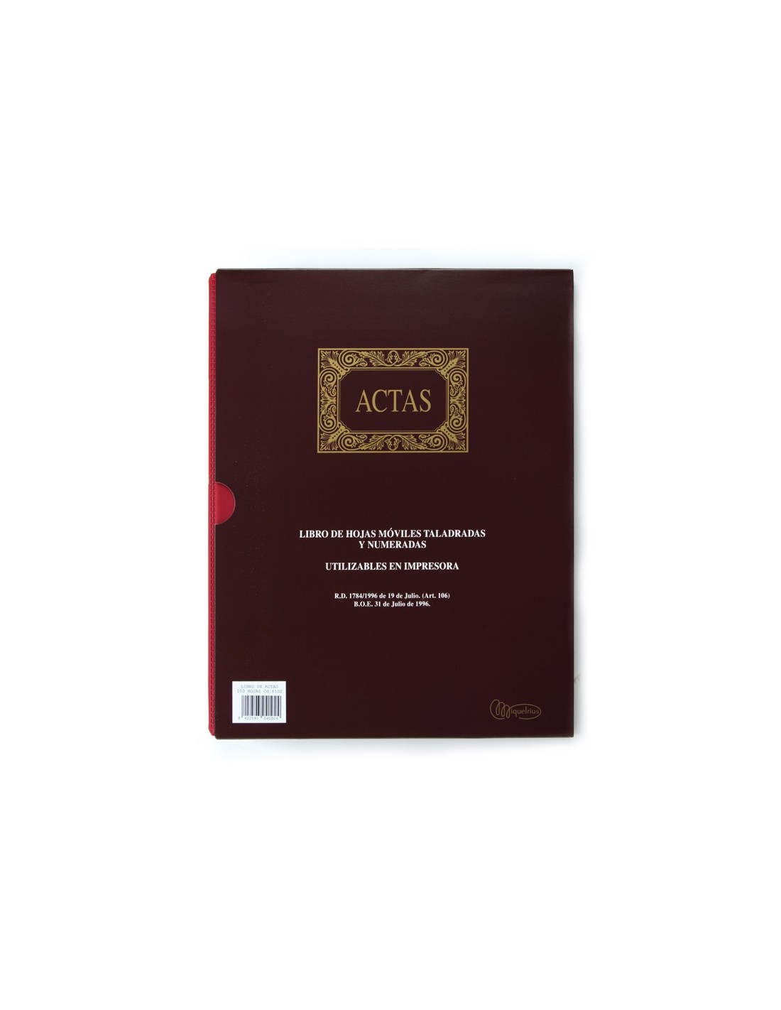 Hojas movibles taladradas y numeradas. Utilizables en impresora. Cubiertas en plástico color burdeos. Mecanismo: 15 anillas de 25 mm de diámetro. Papel de 102 g/m². 100 hojas lisas foliadas. Formato Din A4.