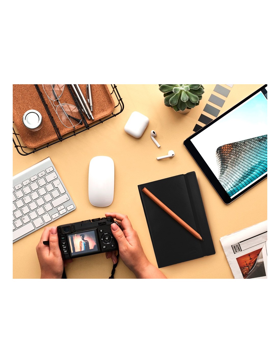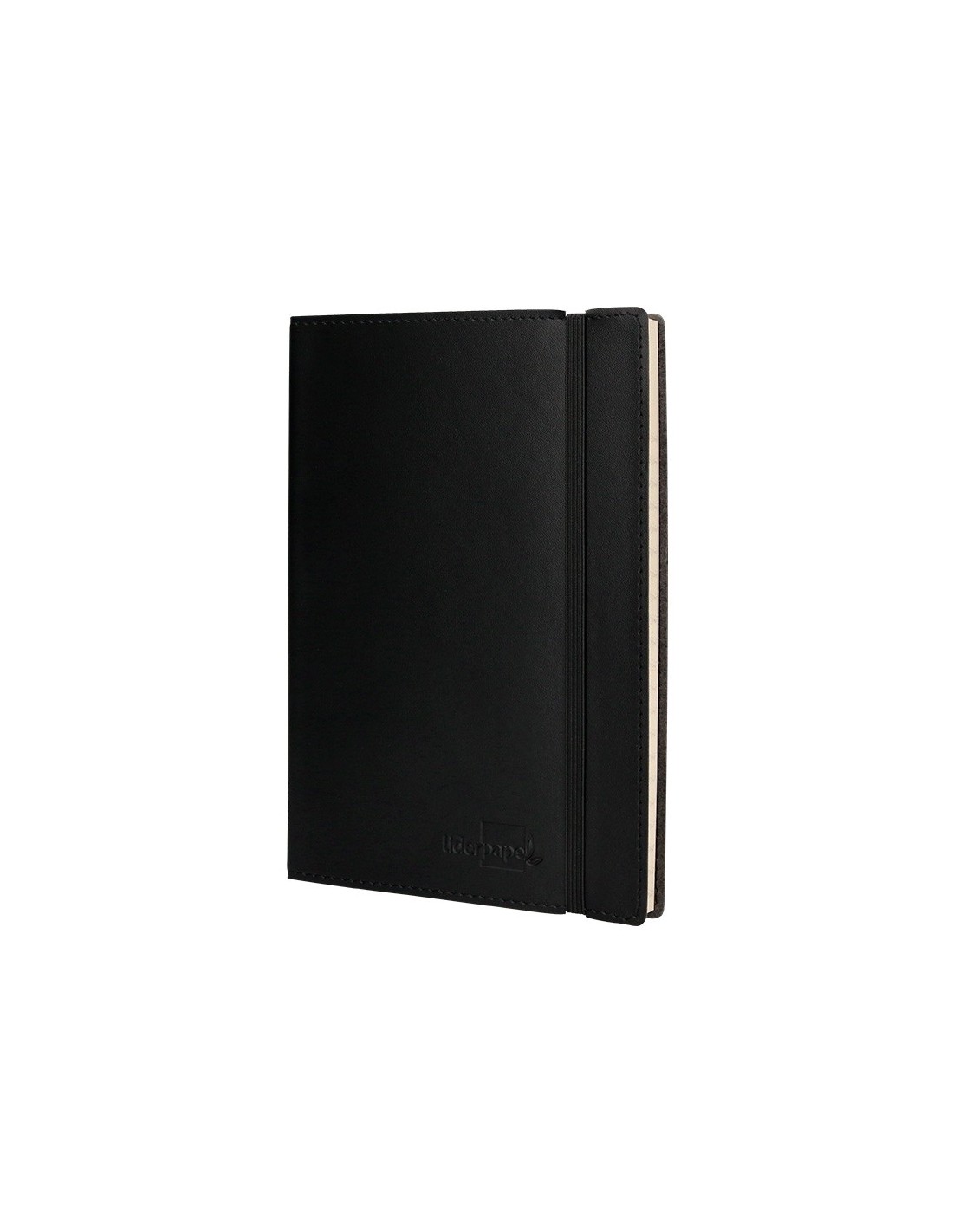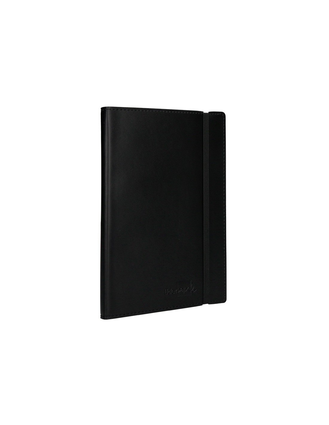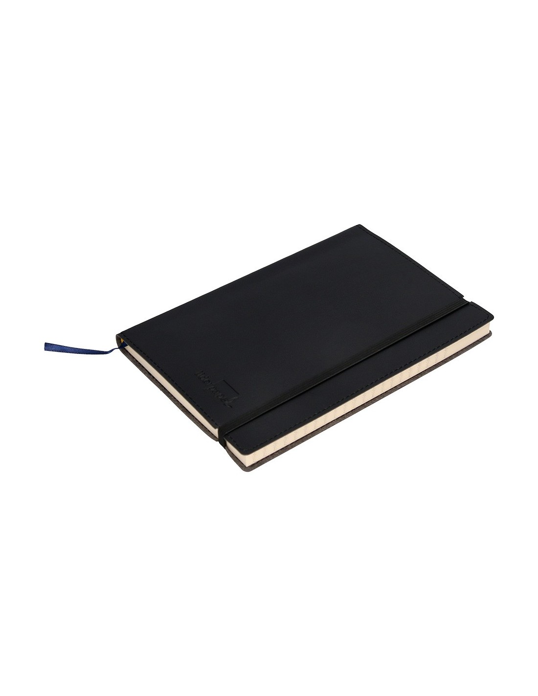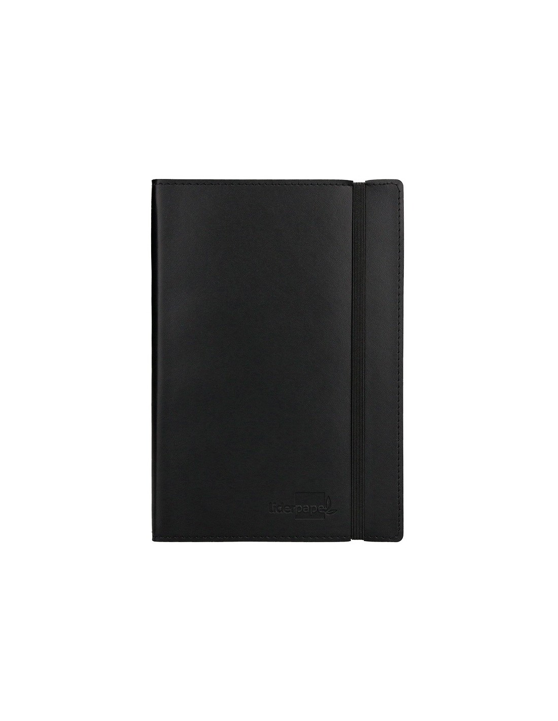 Cuaderno encolado con cierre de gomillas. Perfecta para llevar encima, tomar apuntes, hacer bocetos, plasmar cualquier idea. Tapa símil-piel flexible de 1,75 mm de espesor. 120 hojas. 70 g/m². Sin margen.