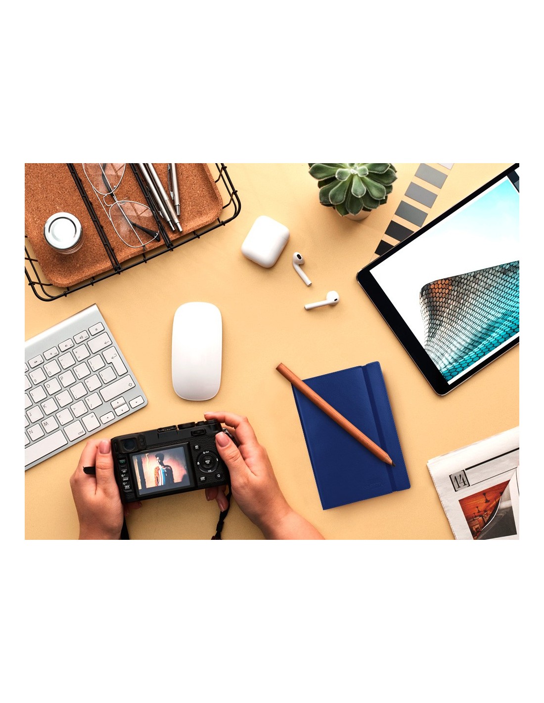 Cuaderno encolado con cierre de gomillas. Perfecta para llevar encima, tomar apuntes, hacer bocetos, plasmar cualquier idea. Tapa símil-piel flexible de 1,75 mm de espesor. 120 hojas. 70 g/m². Sin margen.