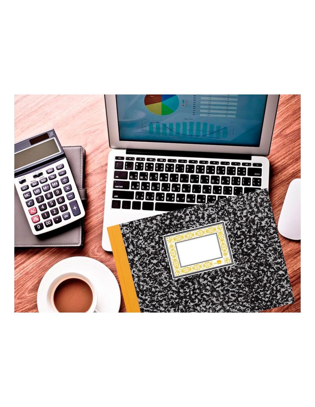 Cuaderno de cartón forrado con papel jaspeado y lomo de tela engomado. Papel de 70 g/m². 100 hojas.