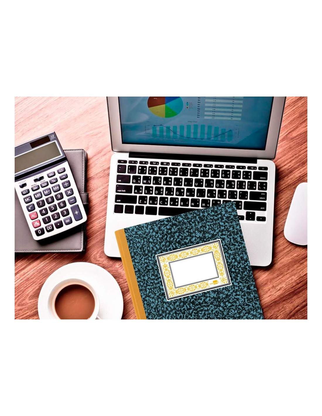 Cuaderno de cartón forrado con papel jaspeado y lomo de tela engomado. Papel de 70 g/m². 100 hojas.