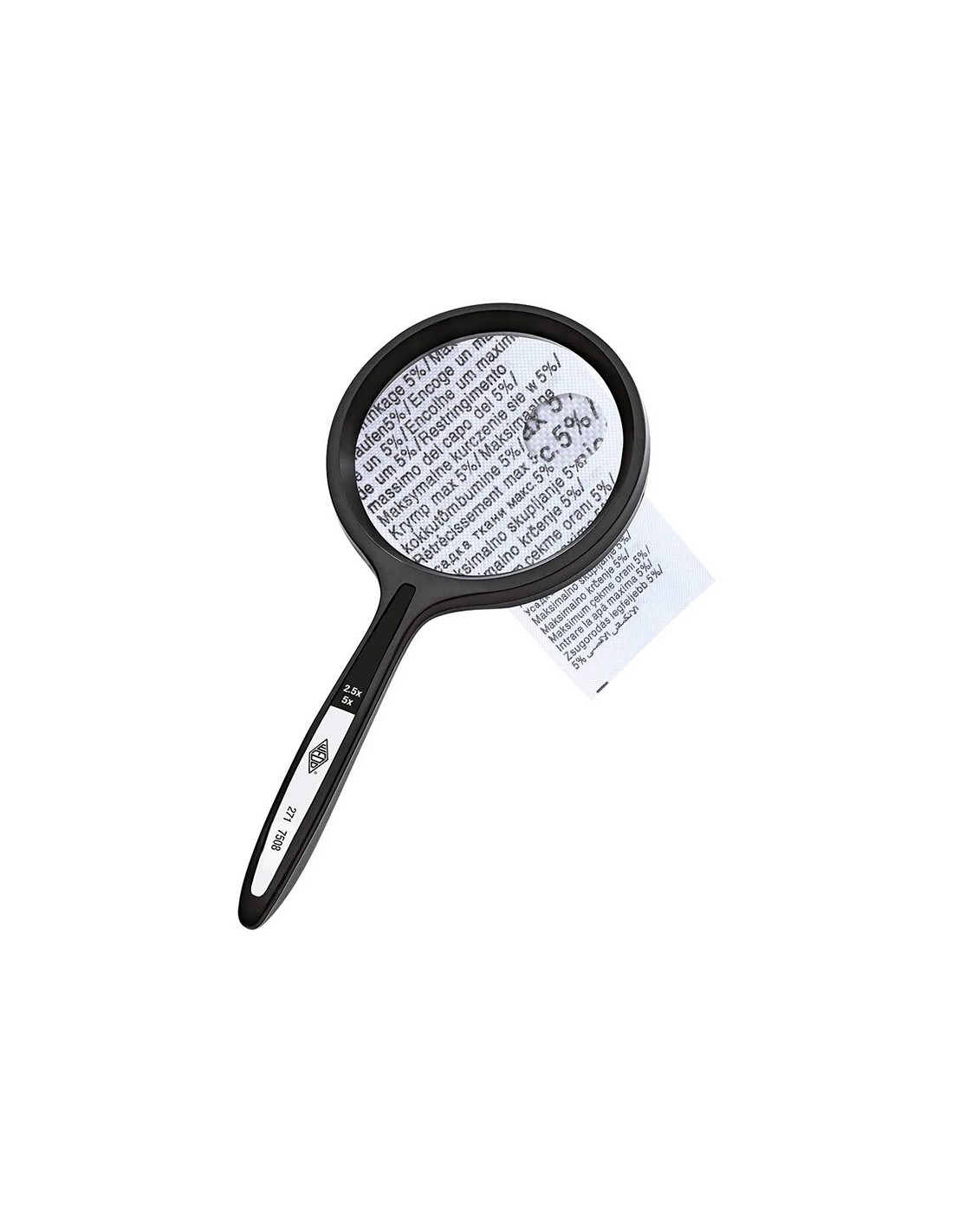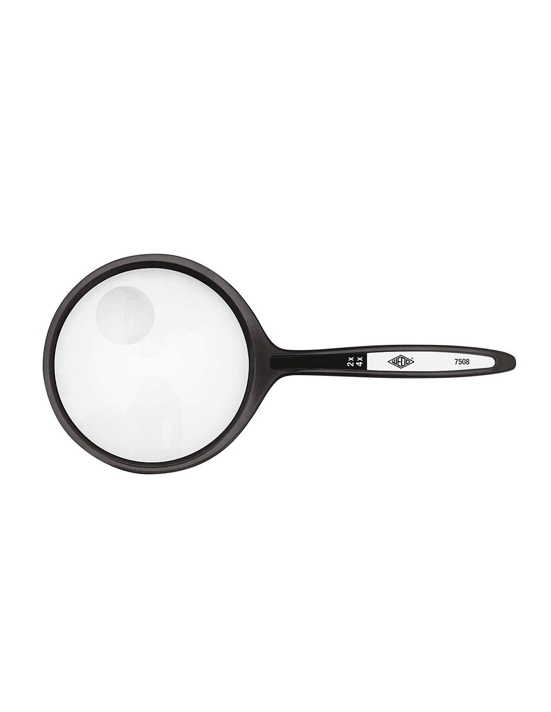 Lupa de lectura con mango curvo y alta precisión. Aro de plástico. 2 y 4 aumentos.