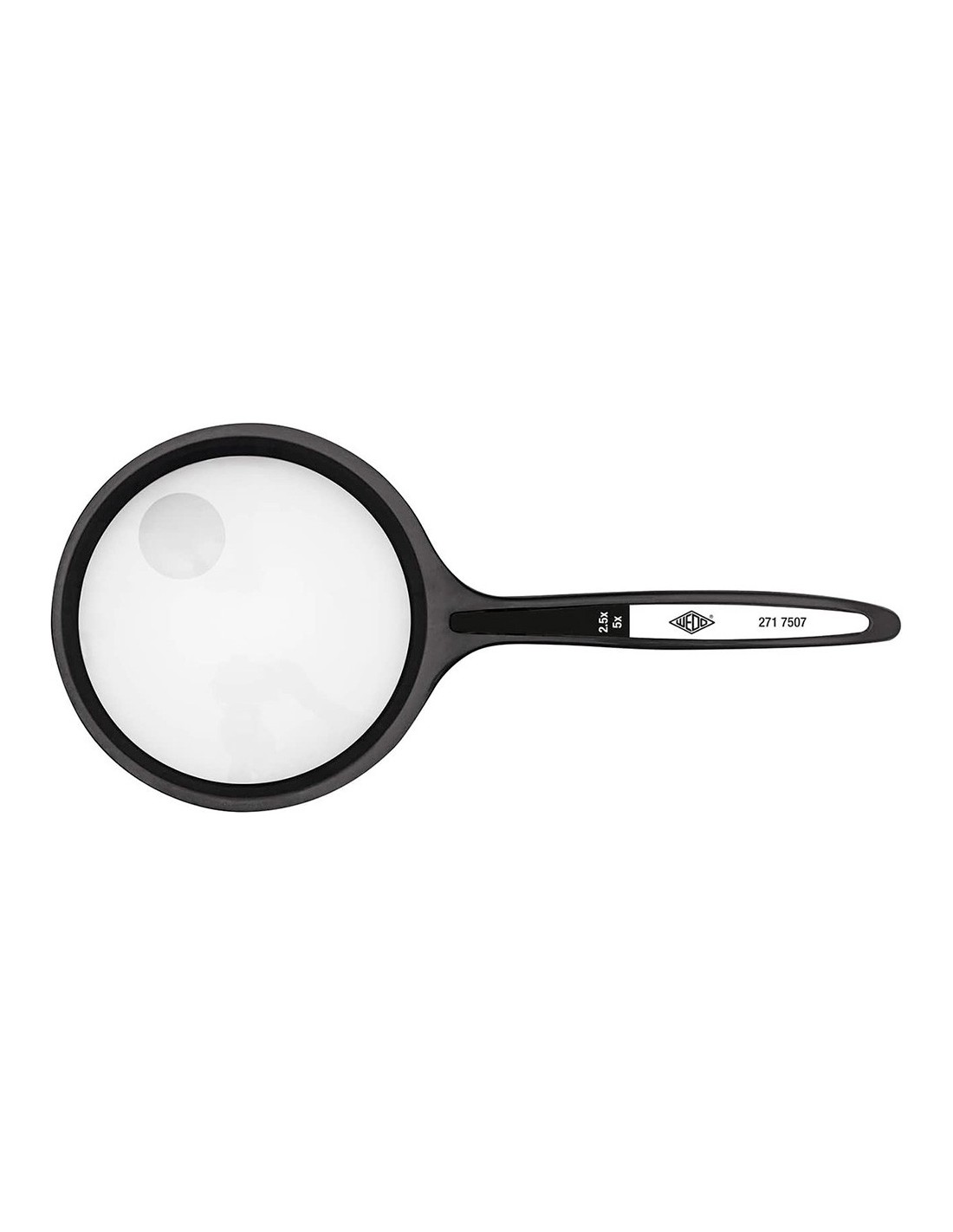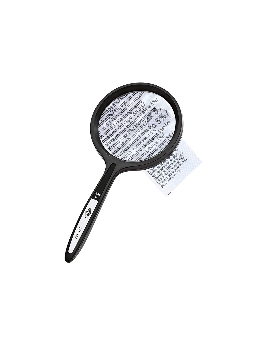 Lupa de lectura con mango curvo y alta precisión. Aro de plástico. 2 y 4 aumentos.