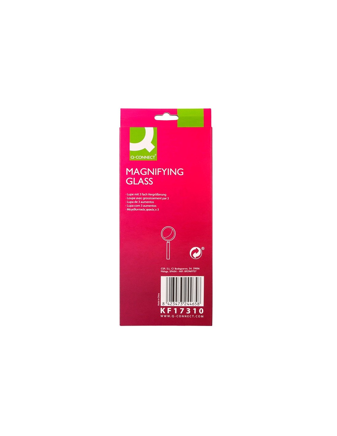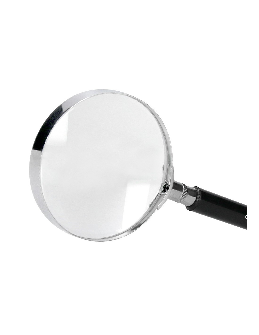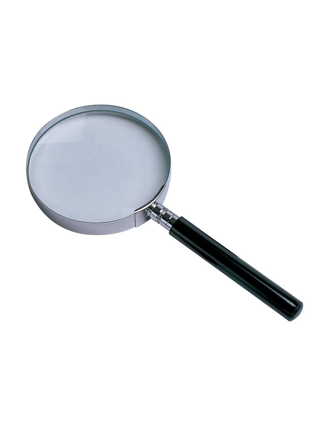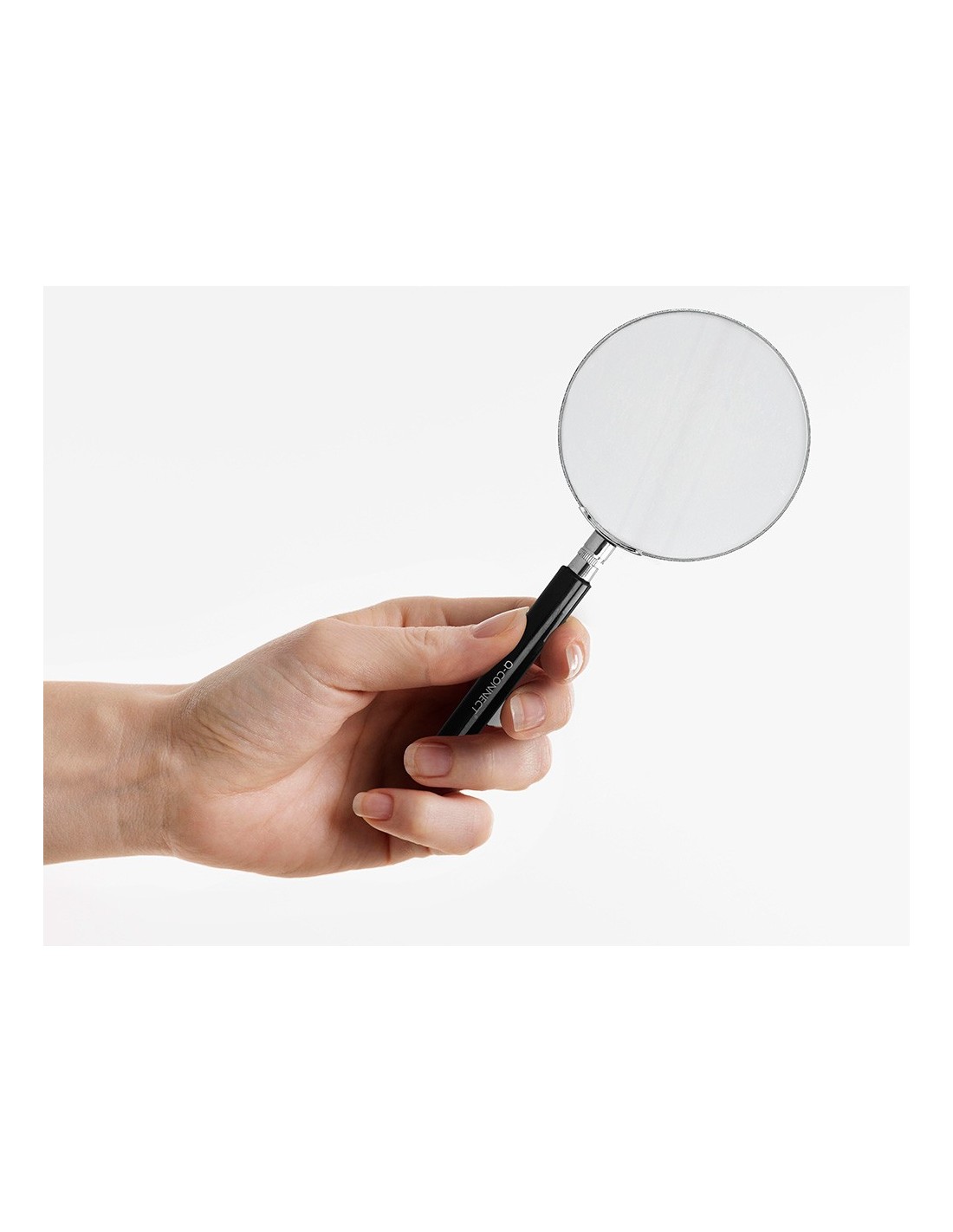 Aro metálico, mango de color negro y alta precisión. Cristal óptico antideformación. 3 aumentos.