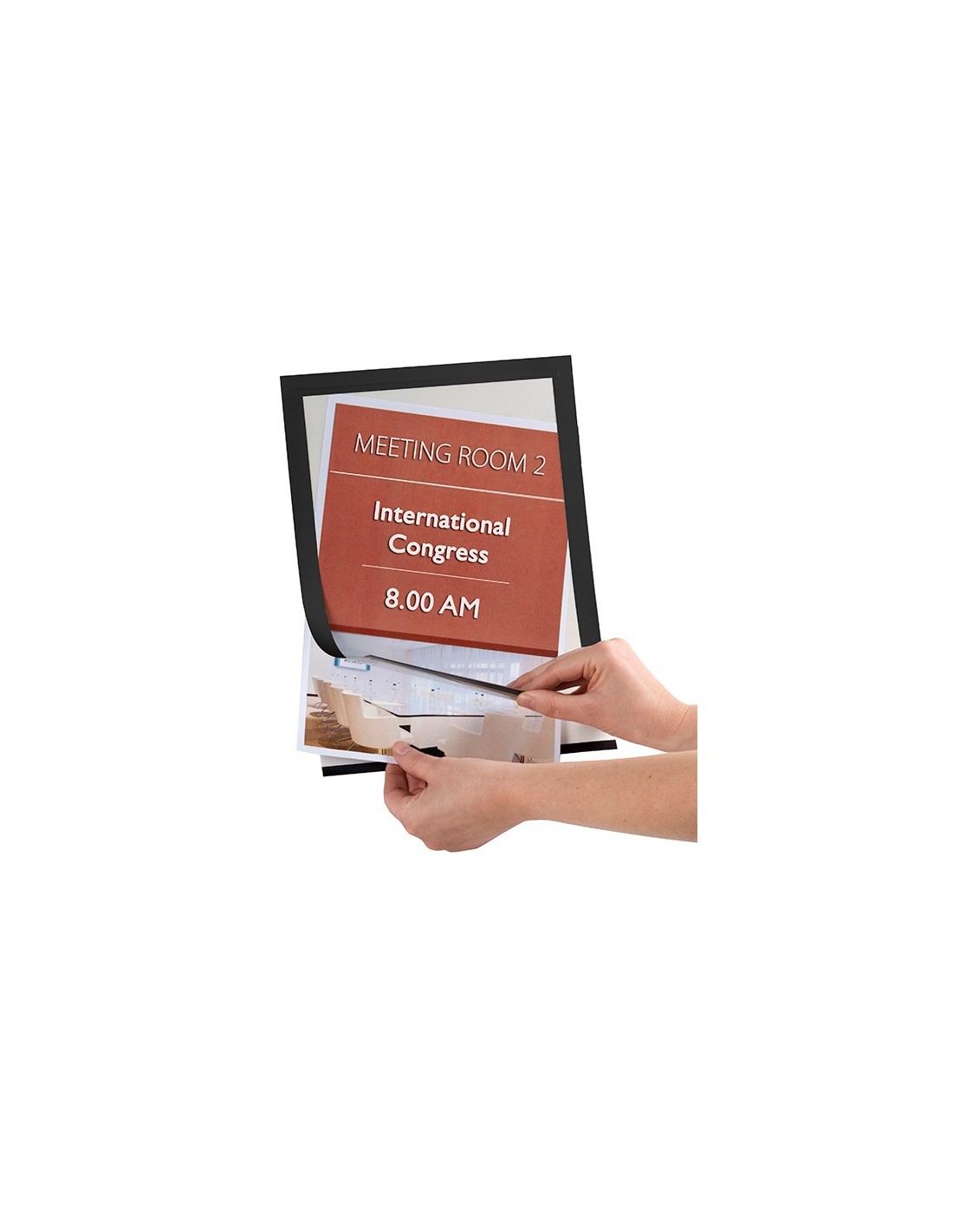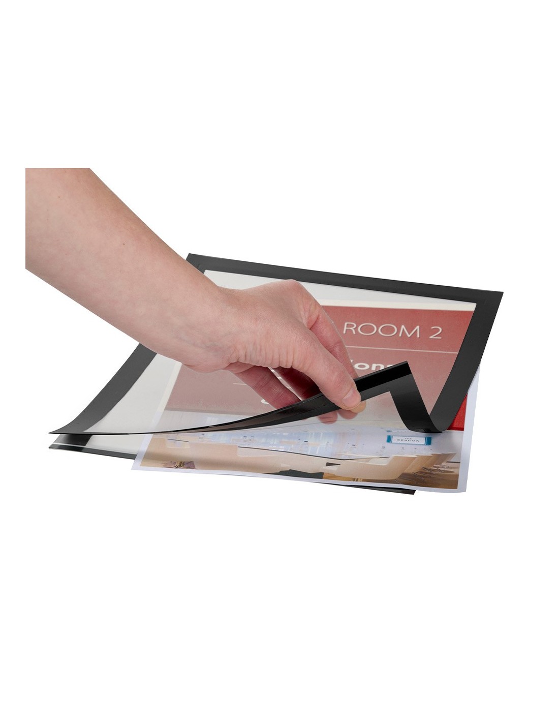 Marco portaanuncios con práctico sistema imantado para la introducción cómoda y rápida de documentos. Para fijar en superficies lisas gracias a su dorso adhesivo removible. Permite uso vertical y horizontal. Formato DIN A4. El pack de 2 marcos.
