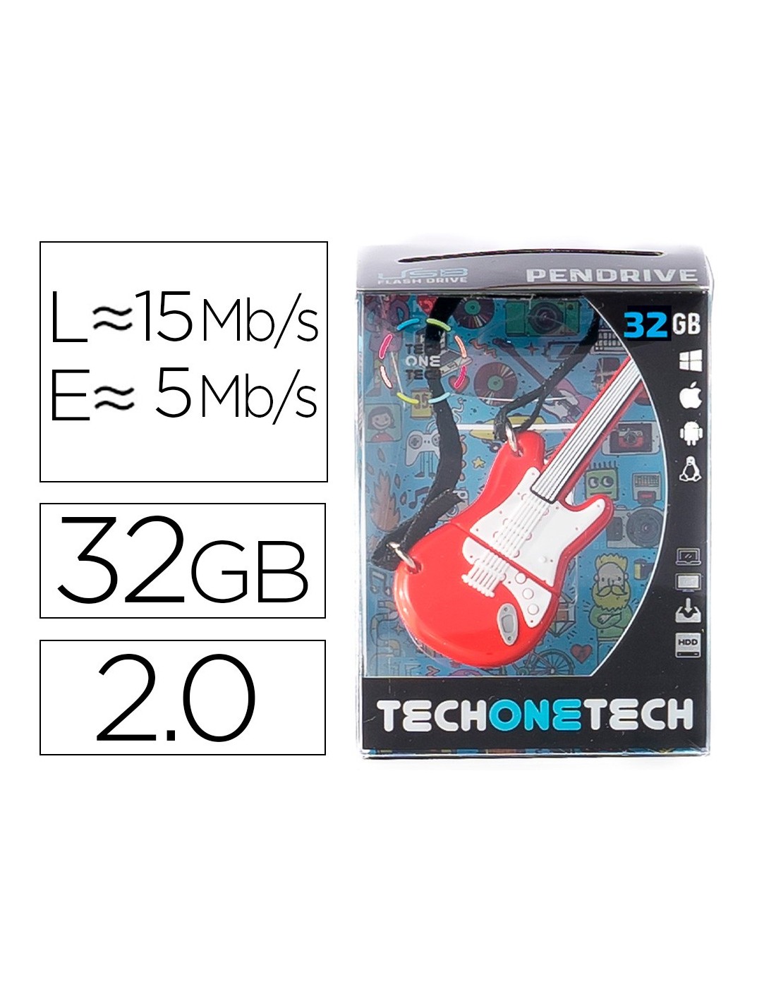 MEMORIA USB TECH ON TECH GUITARRA RED ONE 32GB