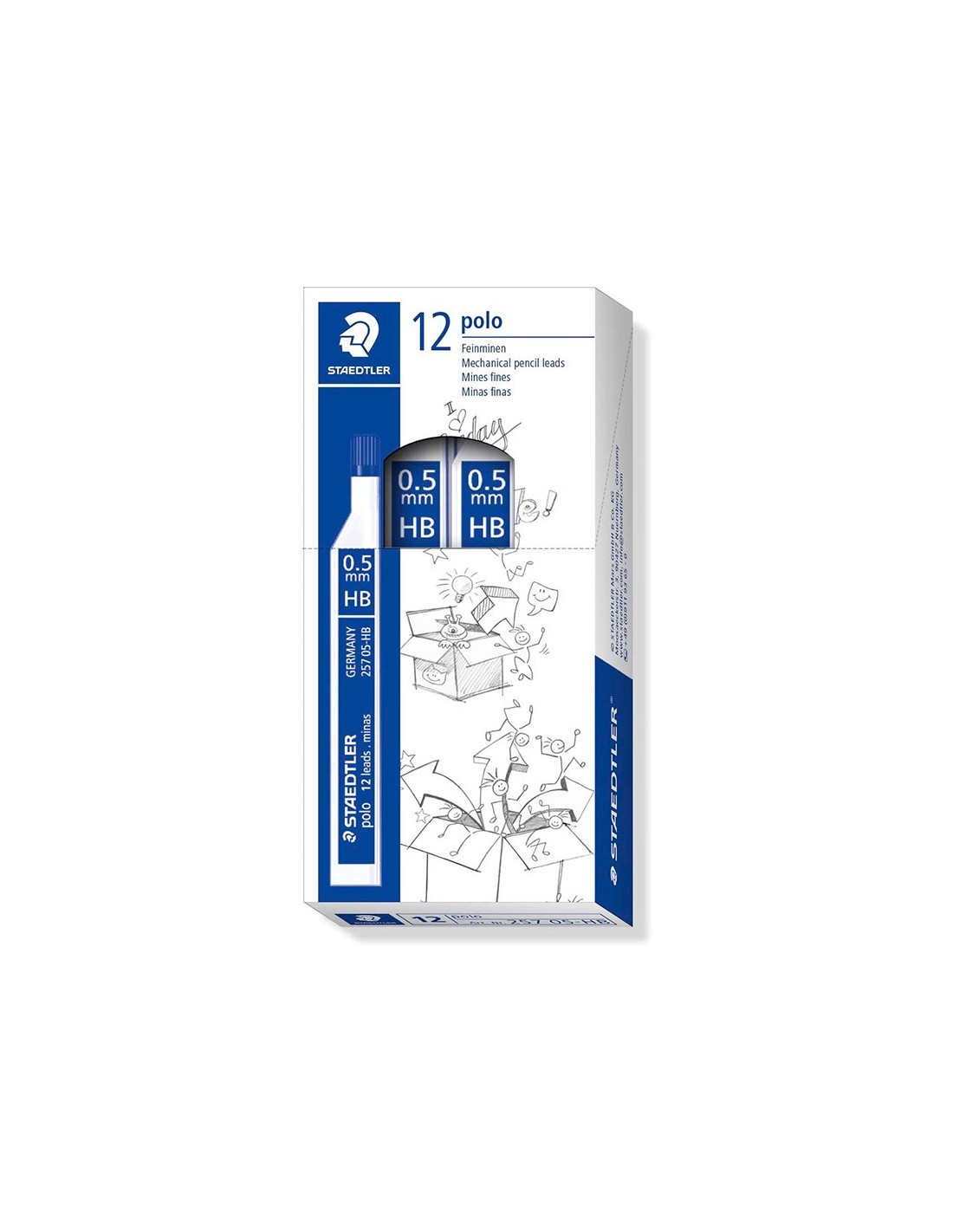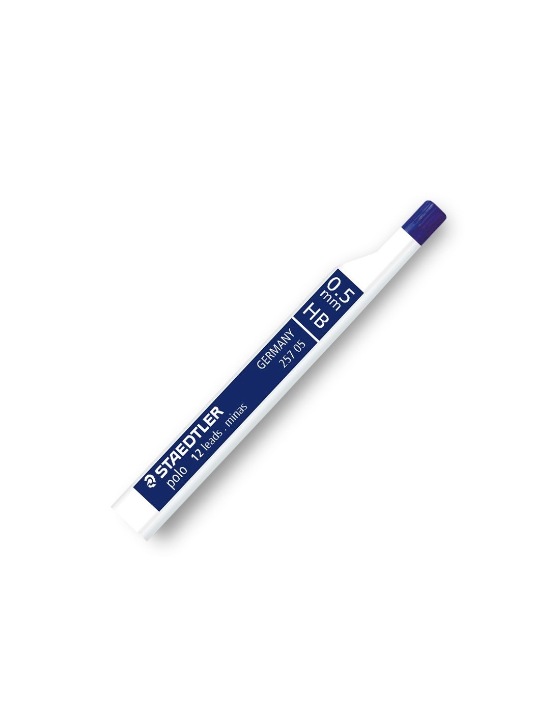 De grafito. Dureza HB. Minas de 0,5 mm. El estuche de 12 minas.