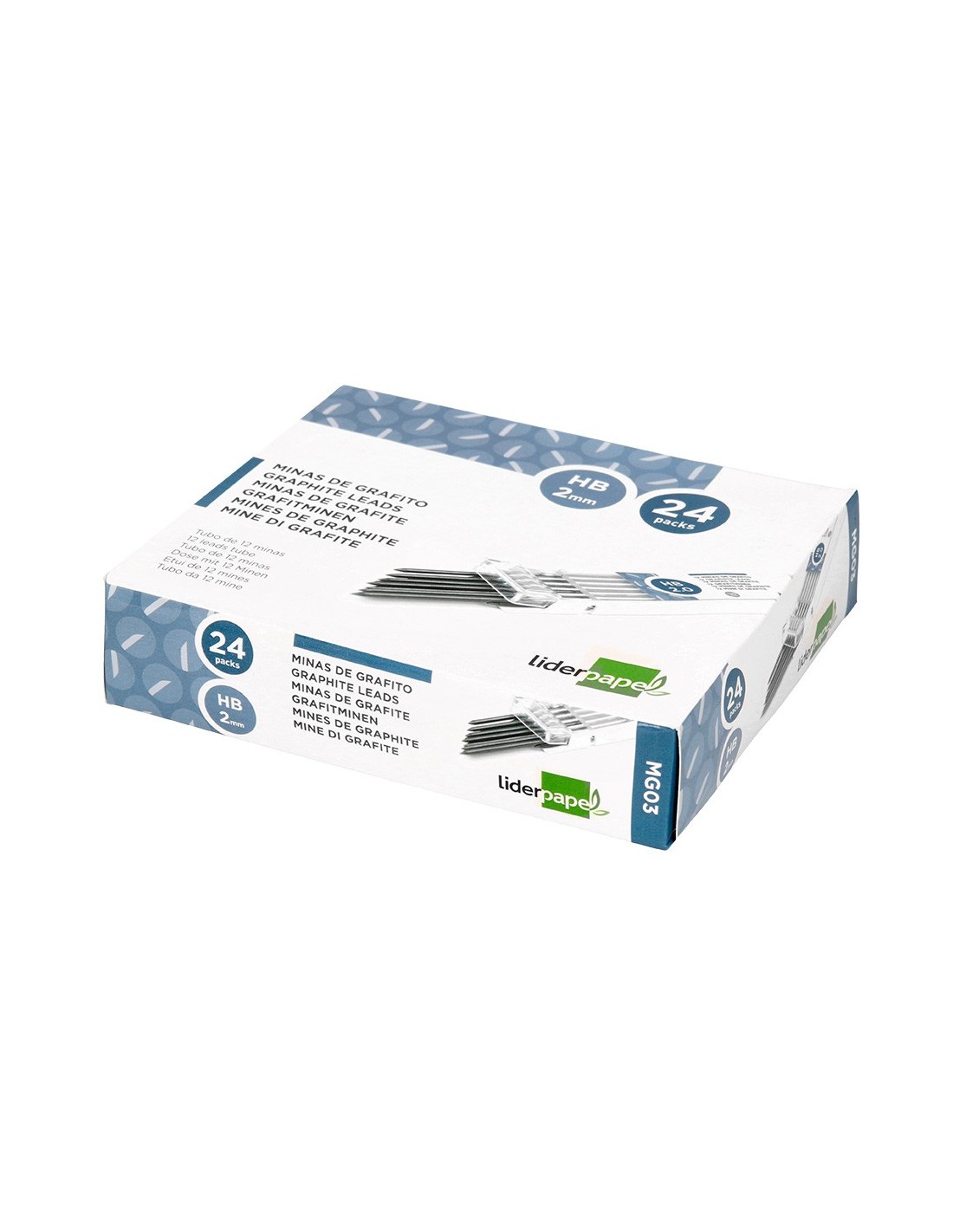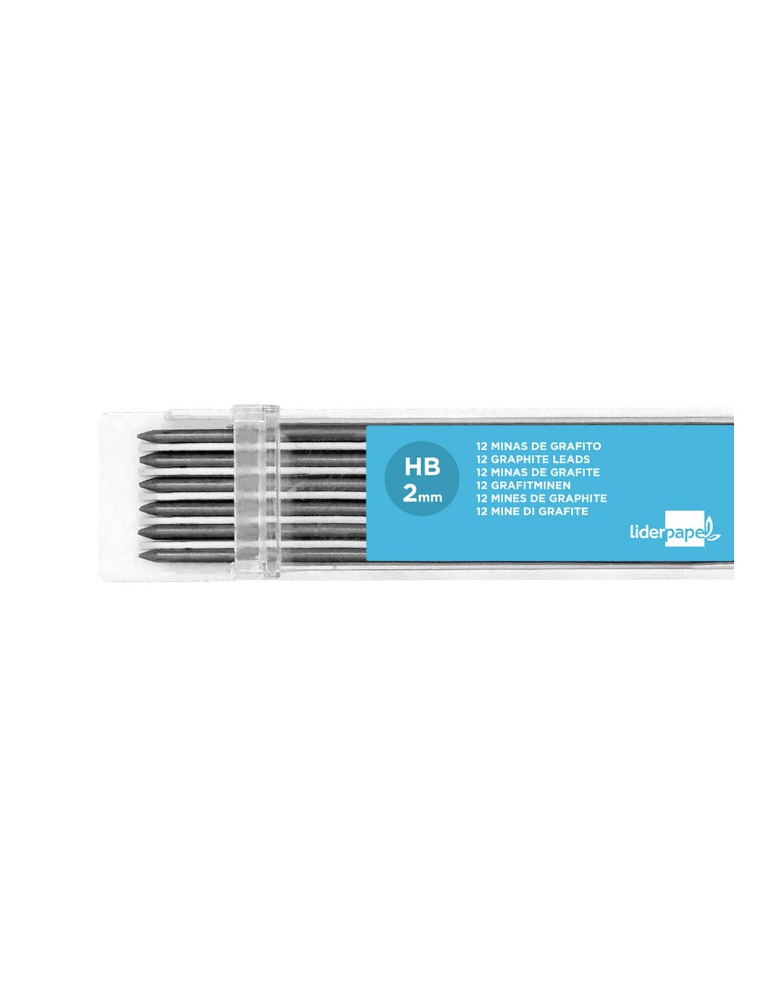 Minas de grafito. Grosor de 2 mm. Dureza HB. El estuche de 12 minas. LONGITUD 120 MM.