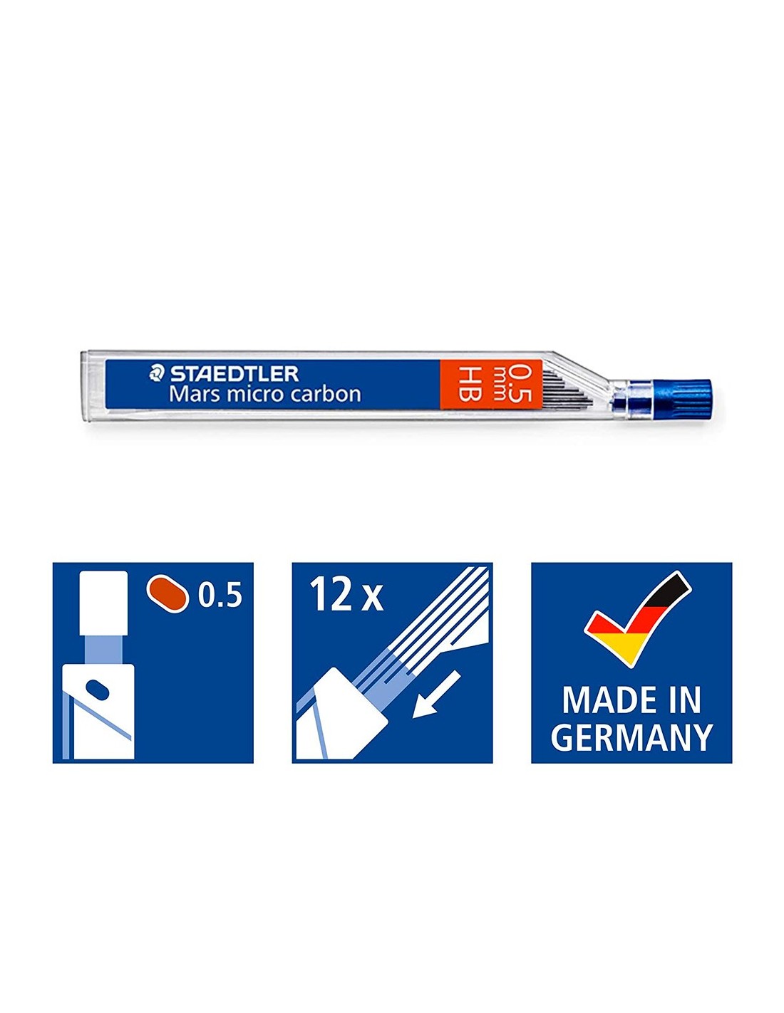 De grafito. Color negro intenso. Alta resistencia y flexibilidad. El estuche 12 minas.