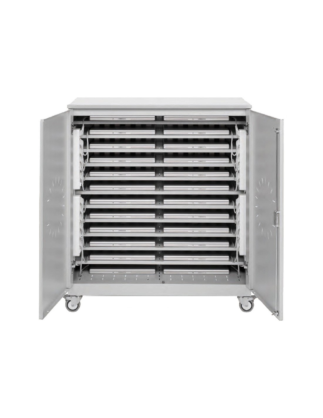 Armario metálico con ruedas. Carga de 24 a 36 dispositivos. Color gris. Medidas: 110 x 95 x 55 cm.