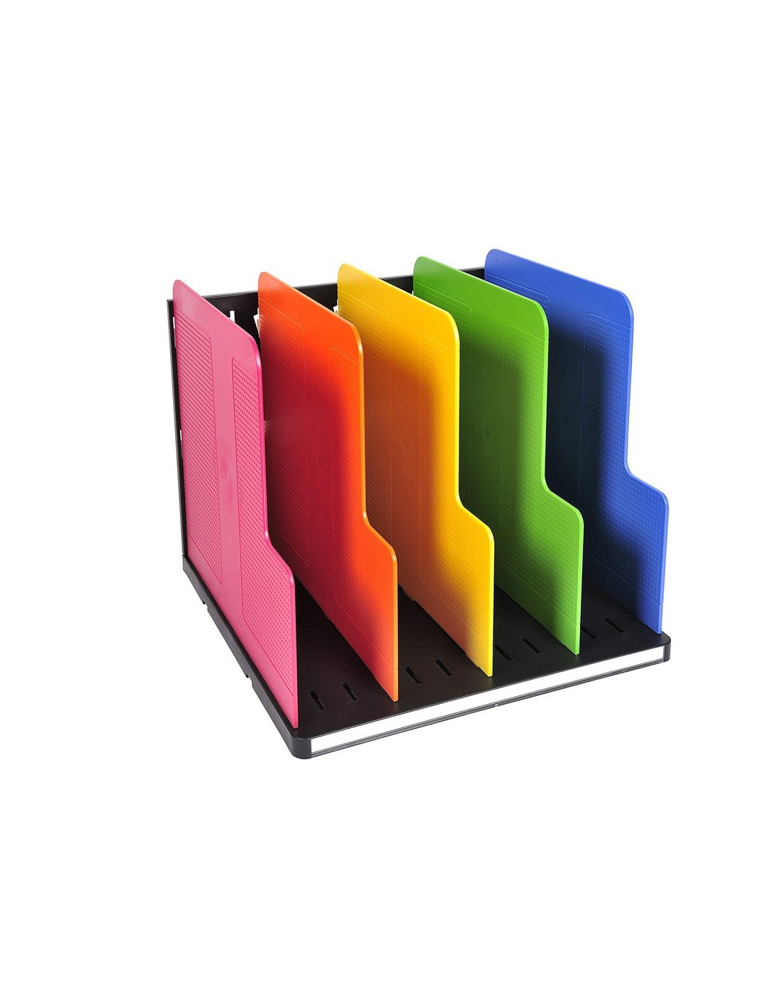 Organizador con 5 separadores. La solución flexible para organizar de manera vertical los documentos DIN A4+. Los separadores se pueden posicionar de manera perpendicular o de manera oblicua. Con una profundidad de 30 cm y con anchura de 29 cm, es compatible con todos los armarios de archivos. También se puede usar solo en una mesa. Medidas: 28,8 x 25,5 x 30 cm.