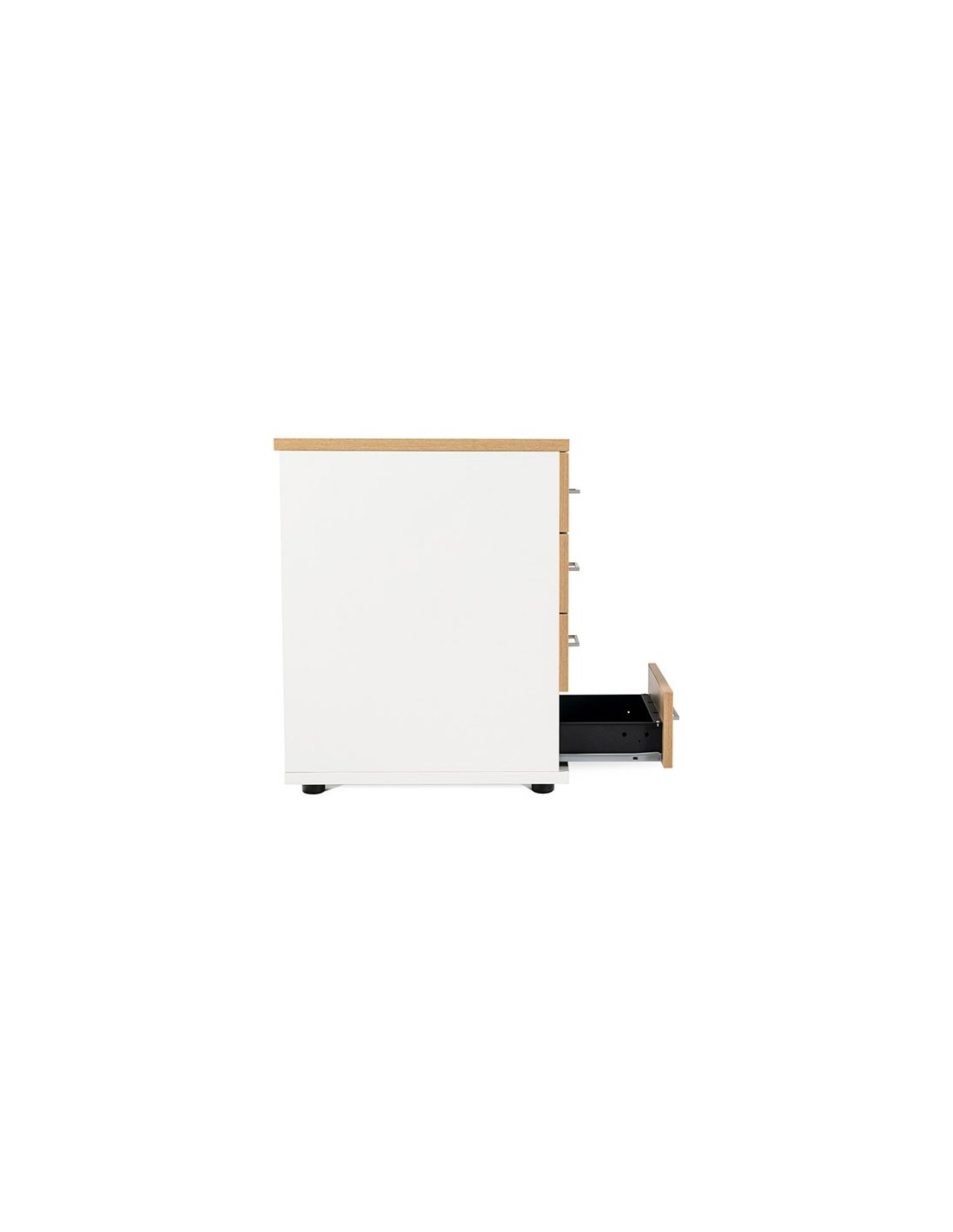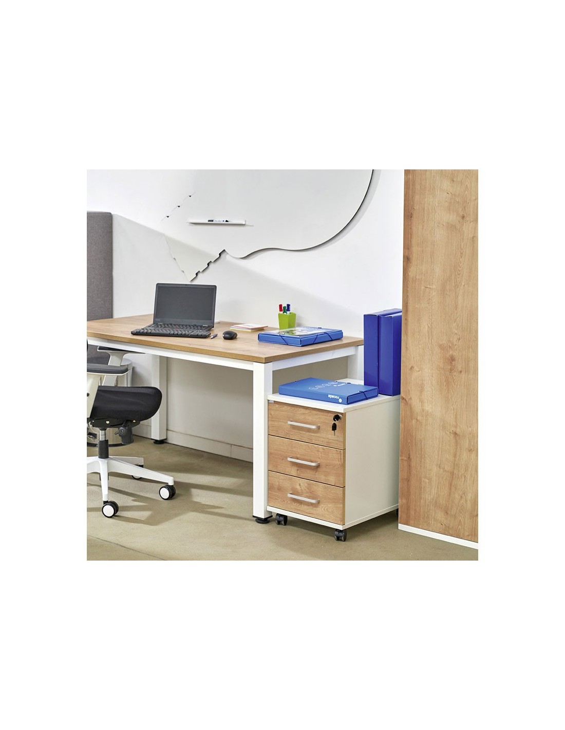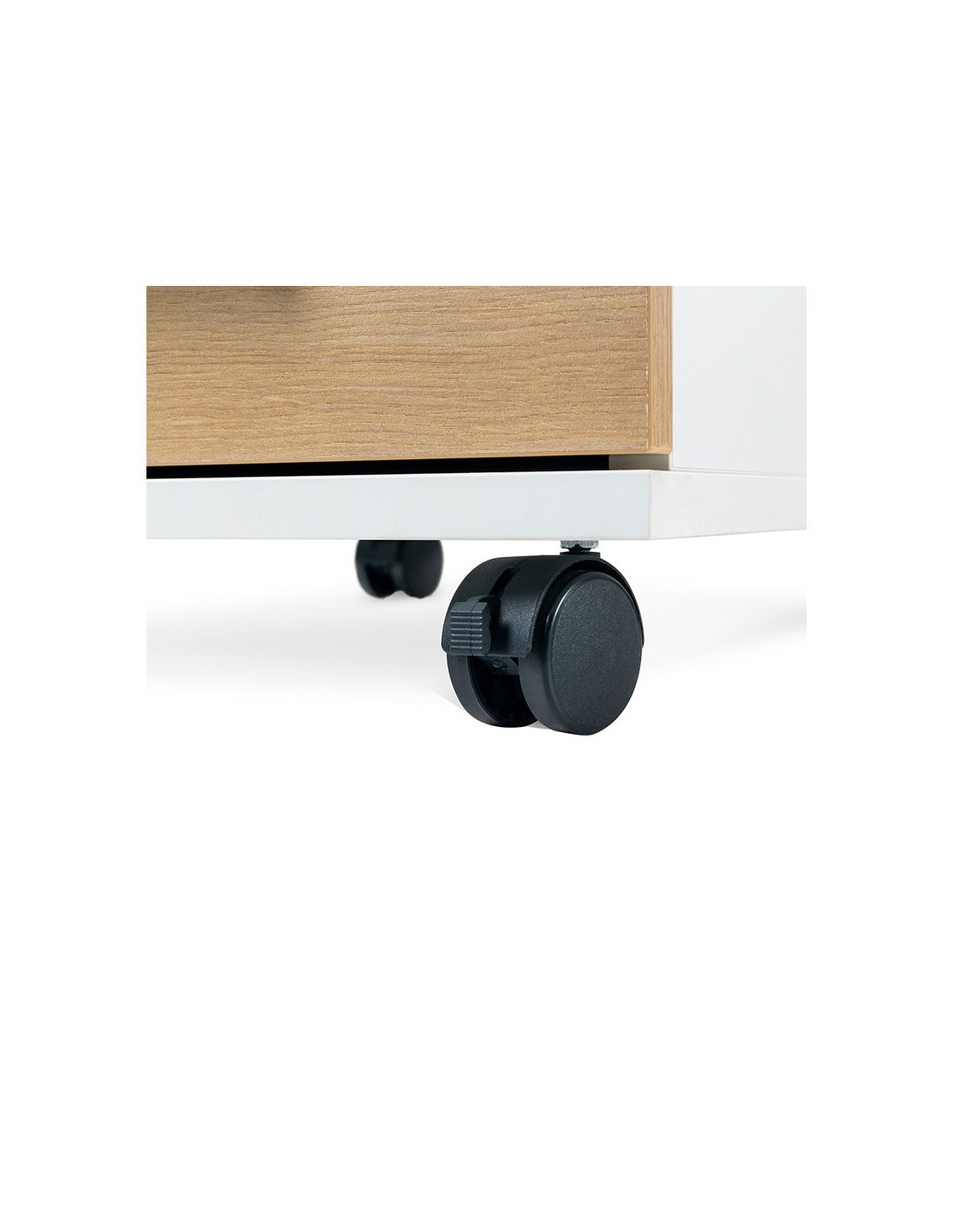 Estructura realizada en melamina de 19 mm en su totalidad, incluido trasera. Las 4 ruedas disponen de sistema de freno para la correcta fijación. Cerradura con 2 llaves plegables. Sistema de cierre centralizado para la confidencialidad deseada. Sistema antivuelco incorporado para una máxima seguridad. Tiradores metálicos con acabado metalizado. Cajones metálicos realizados en chapa de acero. Guías metálicas con rodamientos de Nylon.