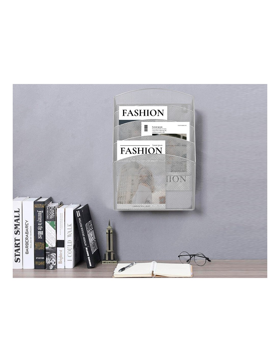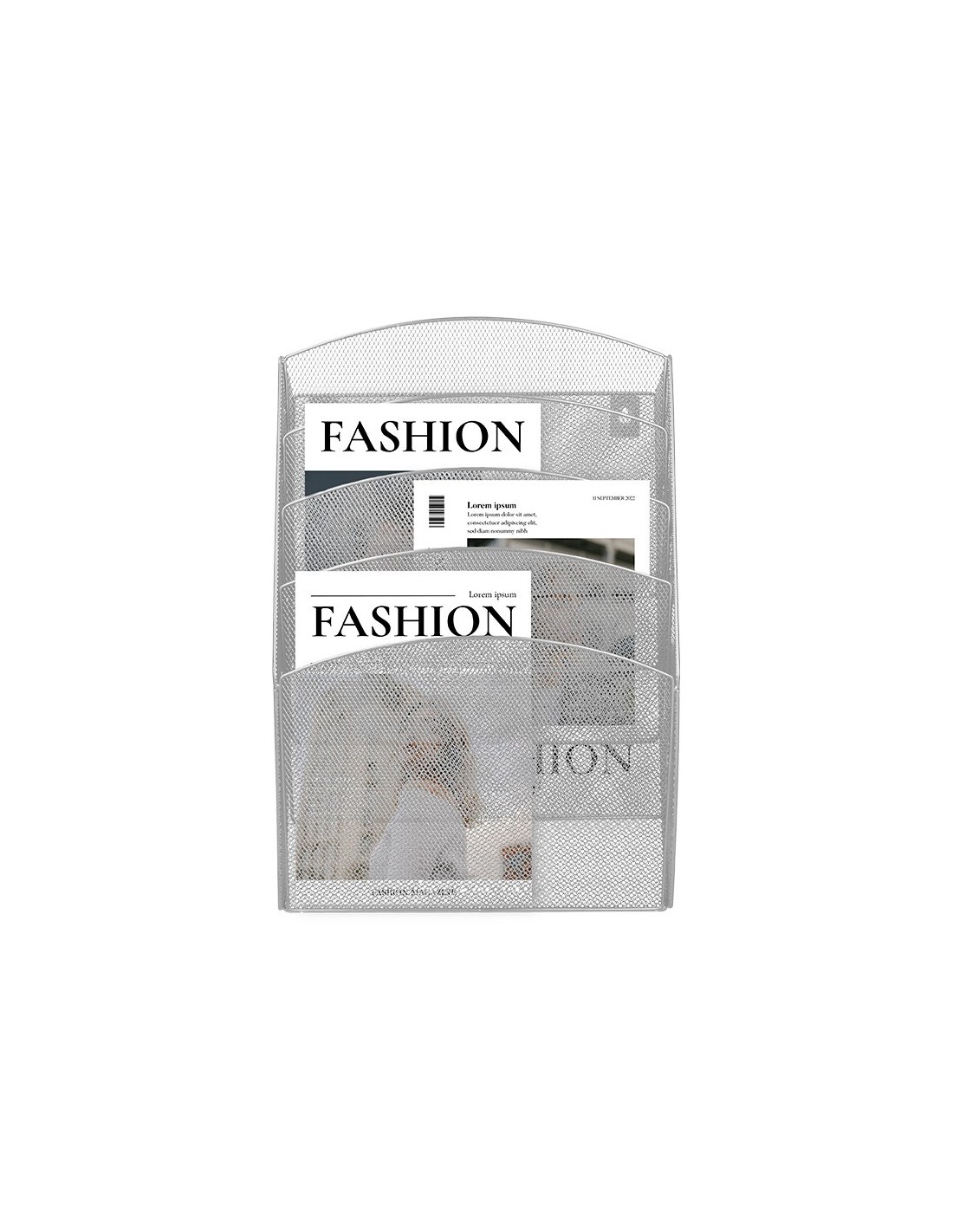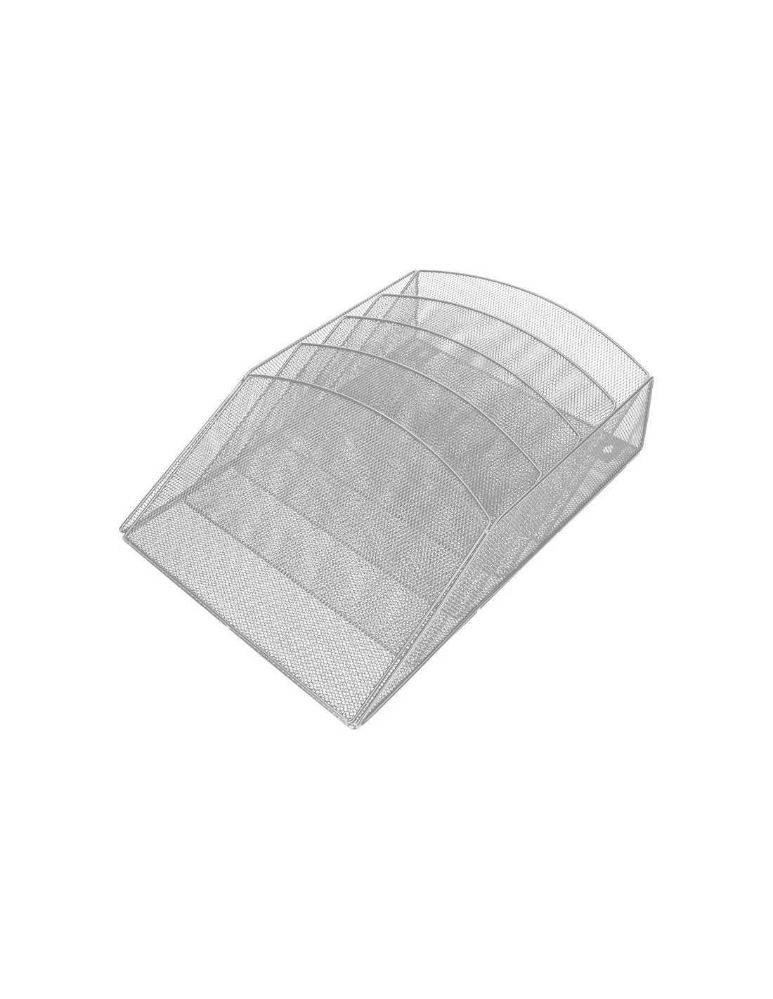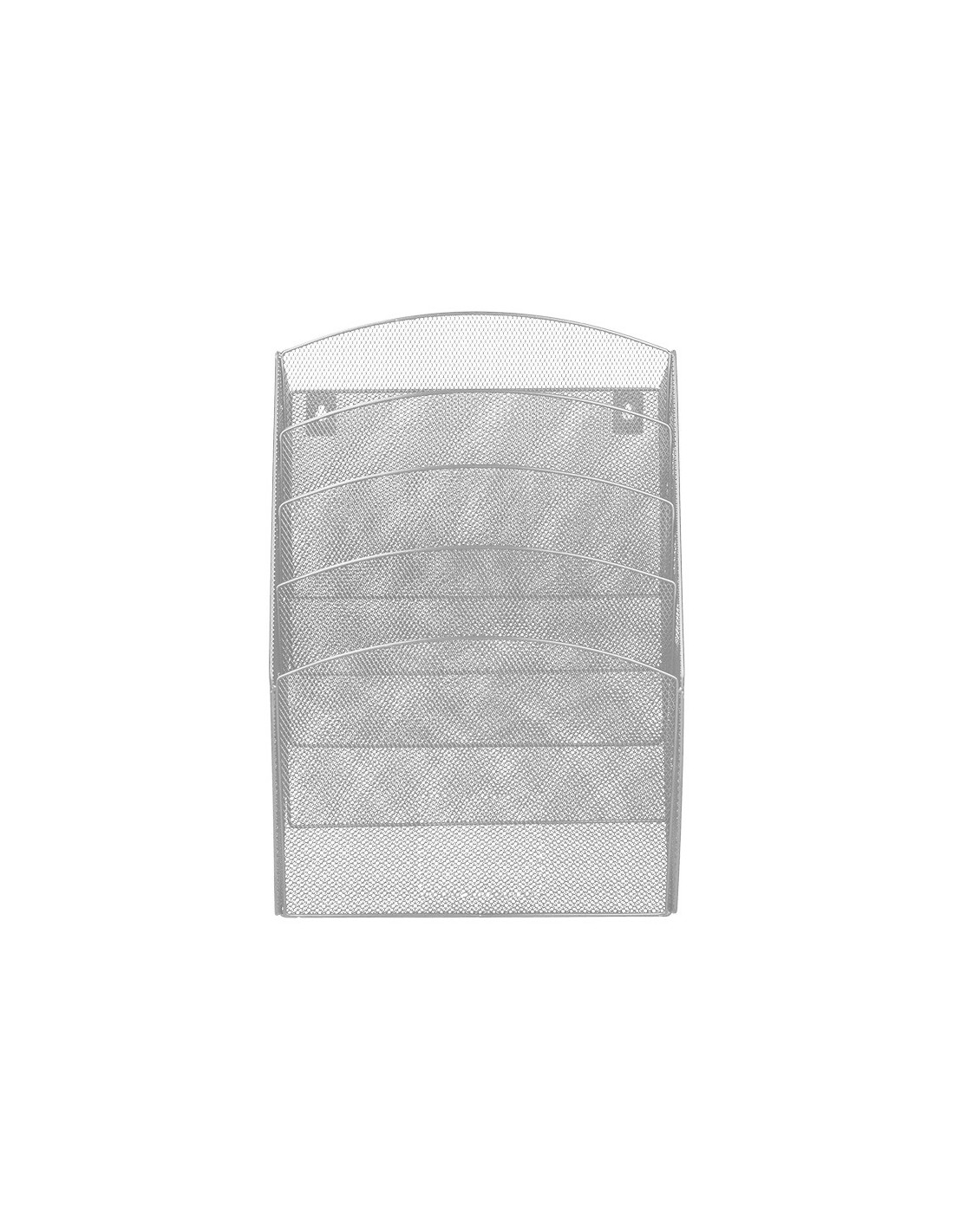 Expositor con 5 bandejas DIN A4 vertical. Fabricado en material de rejilla. Medidas: 31,5 x 44 x 9,3 cm.