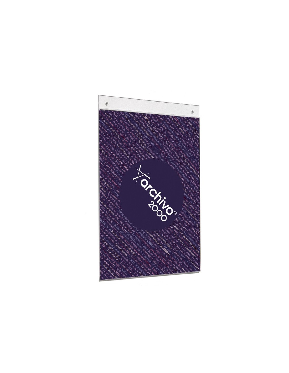 Expositor mural con taladros Archivo 2000 A4 vertical. Fabricado en acrílico ultra transparente de gran calidad y resistencia. Con agujeros pre-perforados para facilitar el montaje en la pared. No es necesario quitar el expositor de la pared para cambiar el documento, se sustituye fácilmente deslizándolo por cualquiera de los dos laterales. Color cristal transparente. Medidas exteriores: 210x320 mm. Fabricado en España.