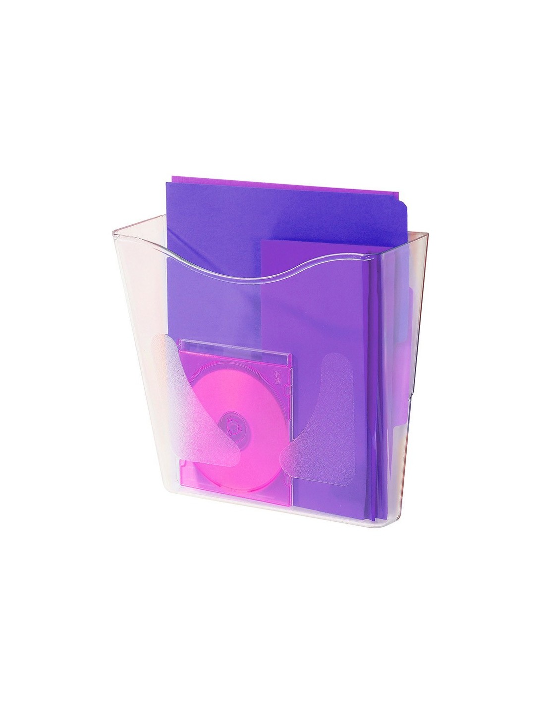 Portafolletos mural Archivo 2000 con 1 compartimento Din A4 vertical. Fabricado en poliestireno ultra transparente de gran calidad y resistencia 100% reciclable. Incluye agujeros preperforados para sujeción en la superficie. No incluye kit de fijación. Opción de formar combinacion de varios. Color cristal transparente. Medidas exteriores: 100x270x255 mm. Fabricado en España.