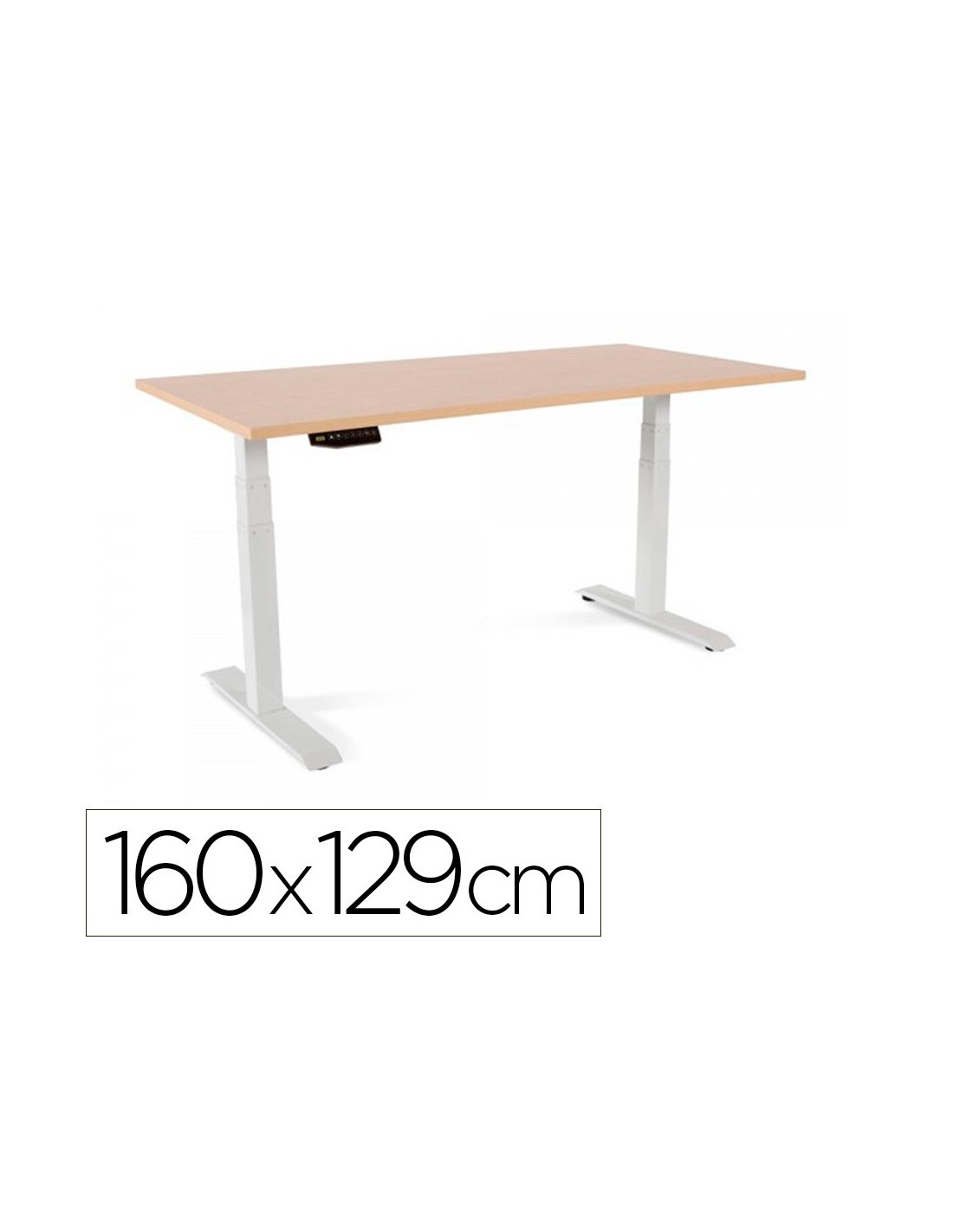 Mesa con sistema de regulación eléctrica en altura para cubrir las necesidades de trabajo más exigentes. Superficie de mesa con melamina de 25 mm de grosor con canto de PVC de 2 mm. Acabados del tablero disponibles en haya, gris, blanco y roble. Estructura realizada en tubo y chapa de acero acabado en epoxy RAL 9010, con columna a tres niveles regulable en altura (mínimo 620 mm - máximo 1260 mm) mediante dispositivo de regulación eléctrico, para conseguir la altura deseada y trabajar de una forma fácil y rápida. Incluye niveladores de regulación en altura de hasta 2 cm.