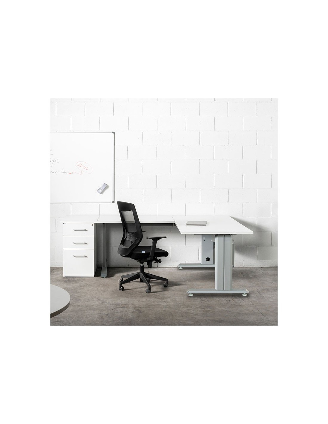 La serie METAL se ajusta perfectamente a cualquier estilo de ambiente, además, es la mejor opción para la organización de los cables ya que posee un sistema de electrificación interna para una mayor limpieza y orden en su espacio de trabajo Compuesta de pies realizados en chapa de acero 2mm de grosor y viga en acero plegado de 1,5 mm de grosor, realizado en plancha metálica plegada y pintada en epoxy según modelo. Tablero de melamina de 25 mm de grosor, color según modelo con canto de 1 mm de grosor del mismo color. Incluye niveladores independentes de 2 cm de regulación.