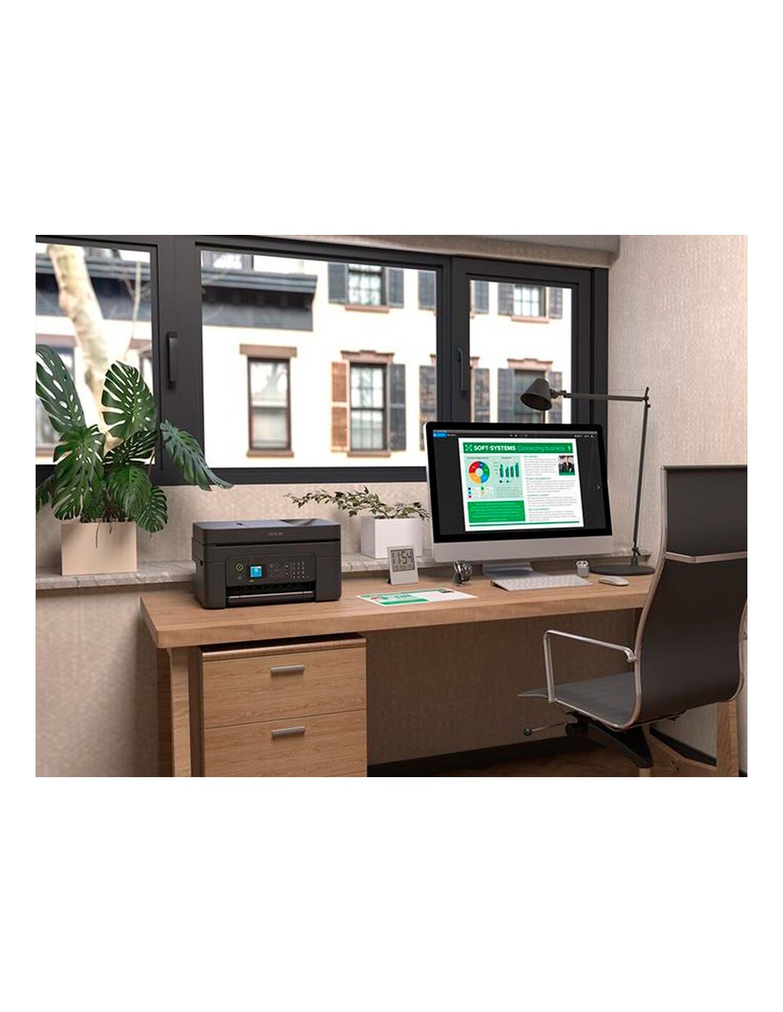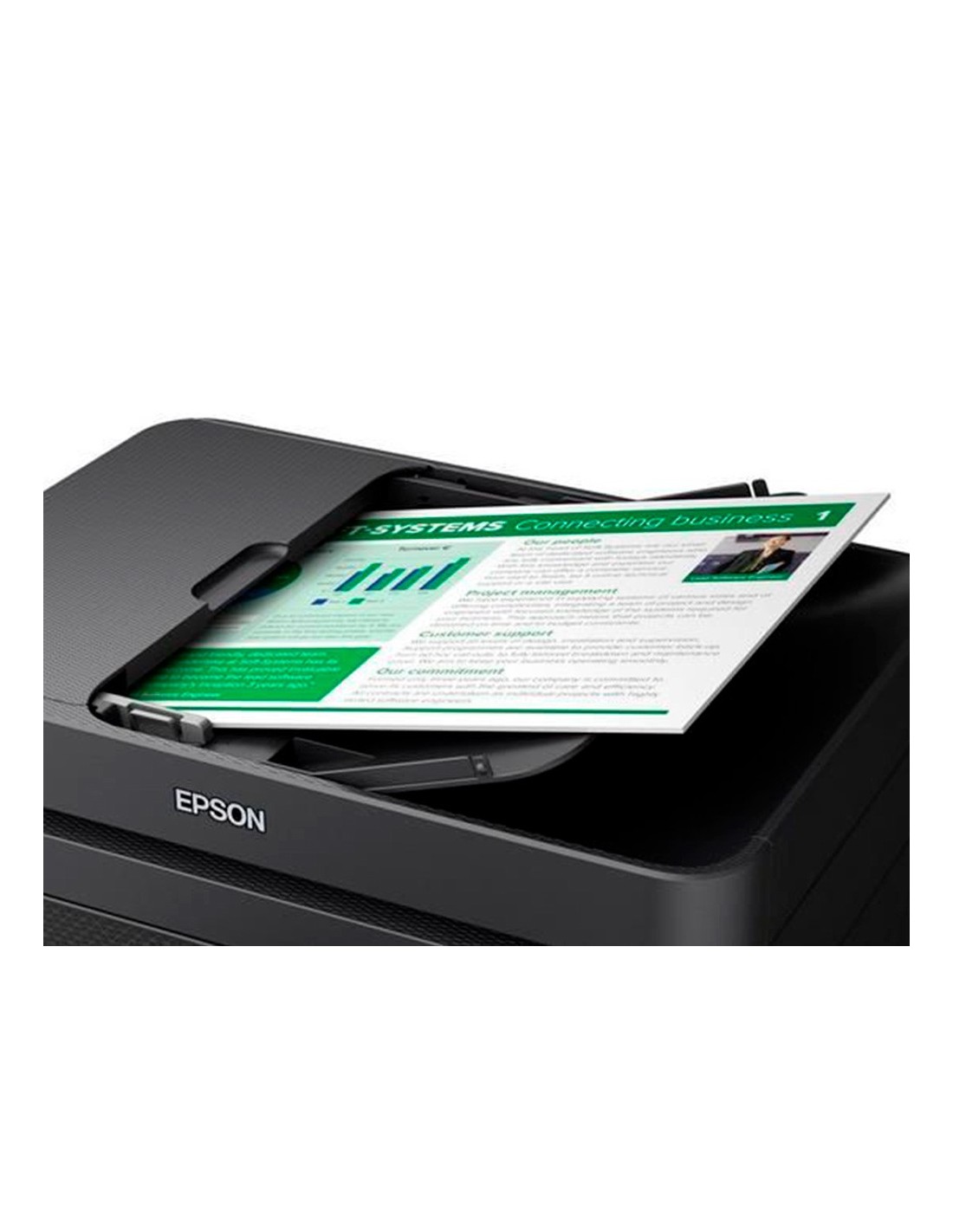 Esta impresora de inyección de tinta multifunción elegante, compacta y fácil de usar reduce residuos y costes con la impresión a doble cara en A4 y tintas individuales de precio asequible. Copia, escanea y envía por fax varias páginas con rapidez con el alimentador automático de documentos (ADF), la tecnología Scan-To-Cloud y la gran pantalla LCD de 6,1 cm. Imprimir sobre la marcha es fácil con Wi-Fi, Wi-Fi Direct, Epson Connect y Apple AirPrint.