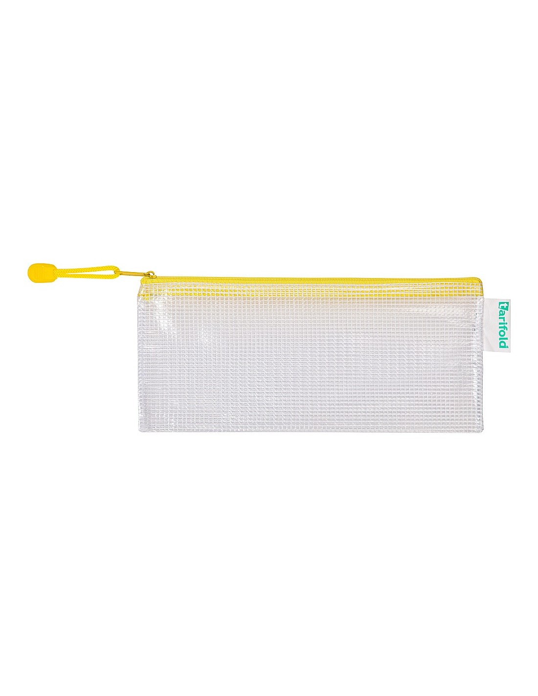 Bolsa multiusos fabricada en PVC, con apertura superior con cremallera. Con portabolígrafo y correa con empuñadura para apertura fácil. Medidas: 250 x 115 mm.
