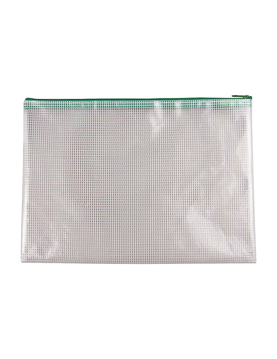 Bolsa de malla reforzada con cremallera de color que ofrece un almacenaje fuerte y funcional. Perfectamente diseñada para almacenar piezas de arte y artesanía, documentos de viaje o herramientas. Ofrece una calidad superior, fabricada en EVA (copolímero de etileno y acetato de vinilo) transparente y tapizada de malla.