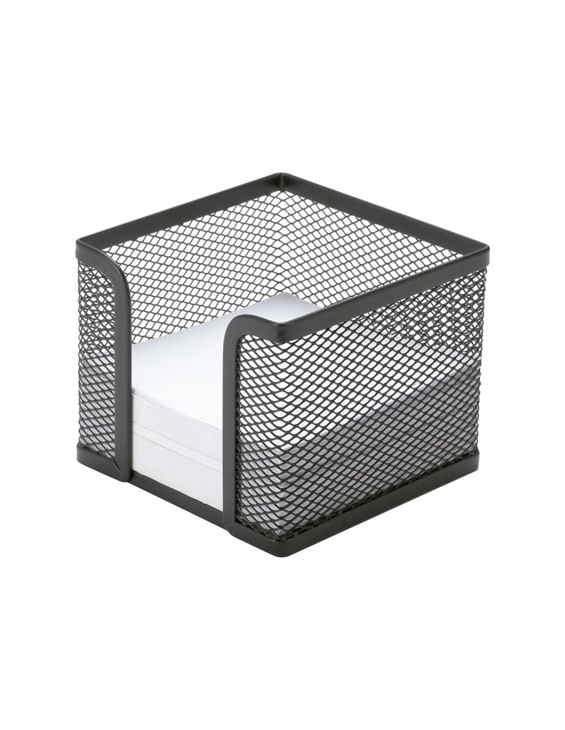 Metálico de rejilla. Medidas: 95 x 95 x 80 mm. No incluye taco de papel.