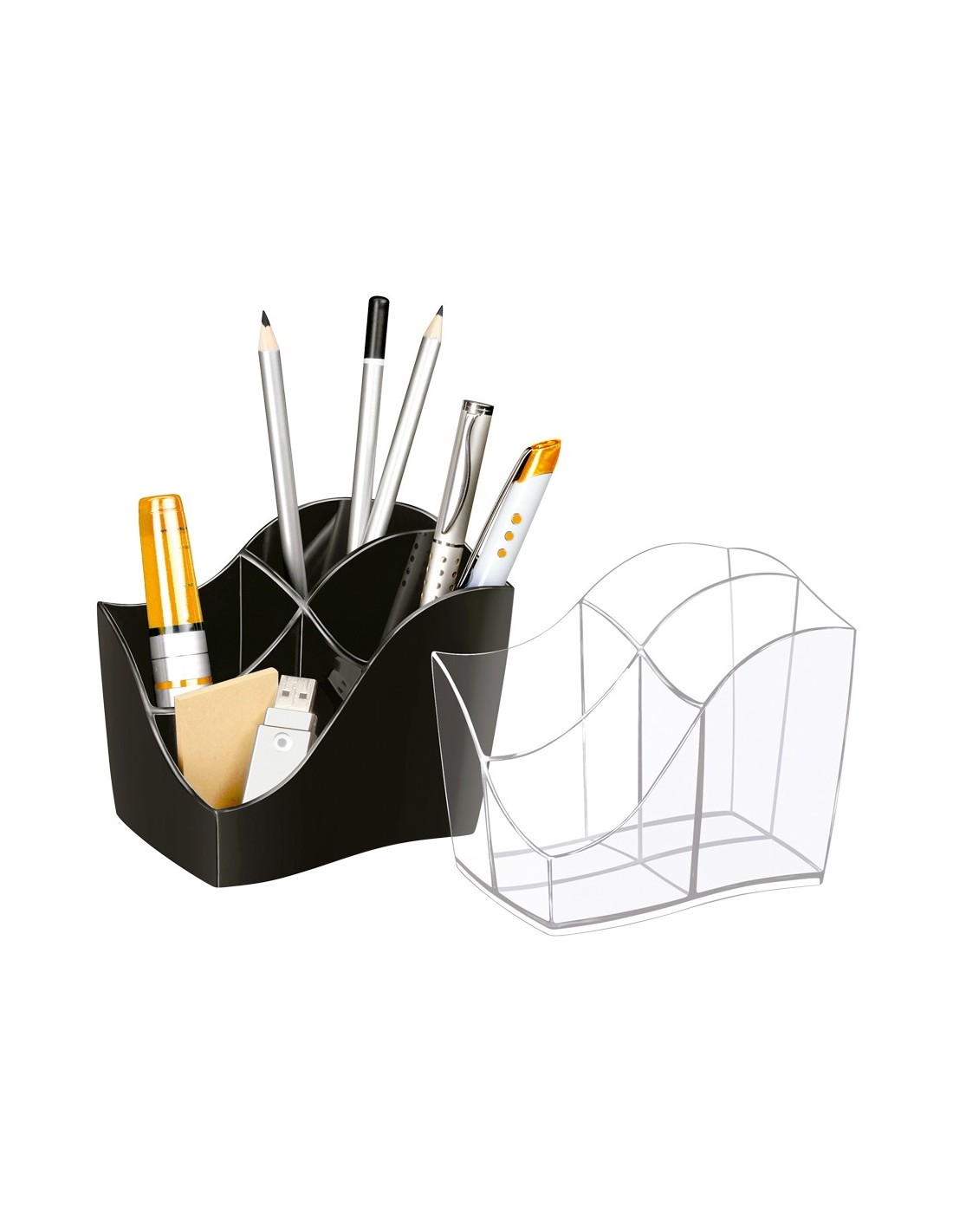 ORGANIZADOR SOBREMESA CEP GAMA ELLYPSE GREENSPIRIT PLASTICO NEGRO 118X89X98 MM. CUBILETE CON 4 COMPARTIMENTOS PARA ORGANIZAR ACCESORIOS DE OFICINA. (NO INCLUYE ACCESORIOS) CAPACIDAD: 45 BOLÍGRAFOS + 1 COMPARTIMENTO GENERAL. ESTABILIDAD EXCELENTE Y FÁCIL ACCESO. MATERIAL ECOLÓGICO: FABRICADO CON UN MÍNIMO DEL 94% DE PLÁSTICO RECICLADO,100% RECICLABLE Y RESISTENTE A LOS GOLPES. DIMENSIONES: 118 X 89 X 98 MM.