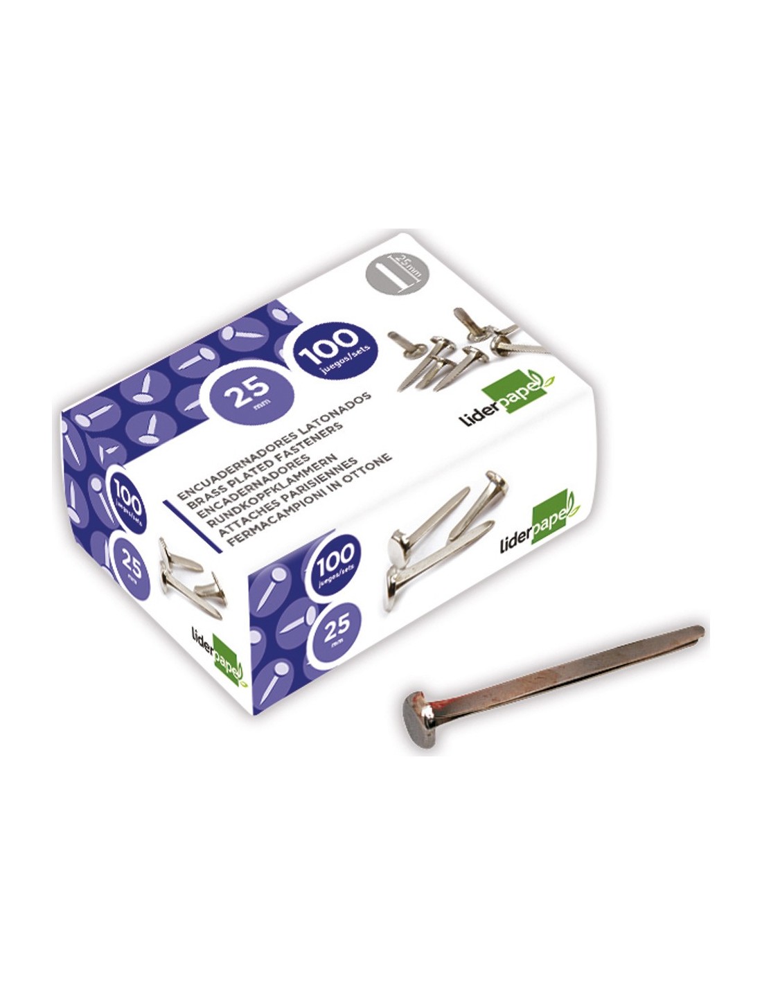 Encuadernadores niquelados de cabeza redonda. La caja de 100 unidades.