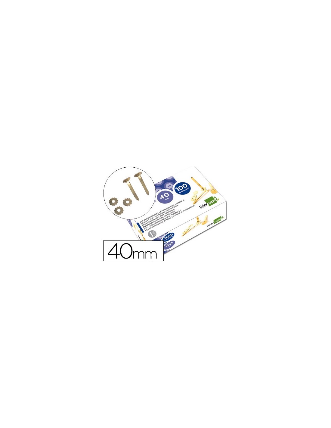 Encuadernadores extraplanos latonados con arandelas. La caja de 100 unidades.