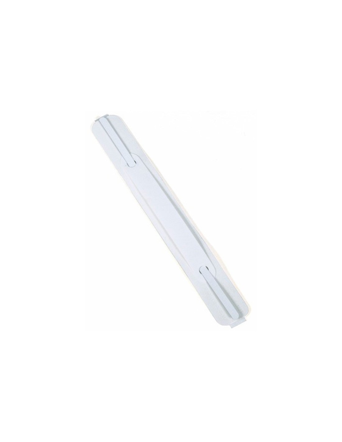 Fástener metálico plastificado autoadhesivo en la parte posterior. Color blanco. Medidas: 38 x 158 mm.