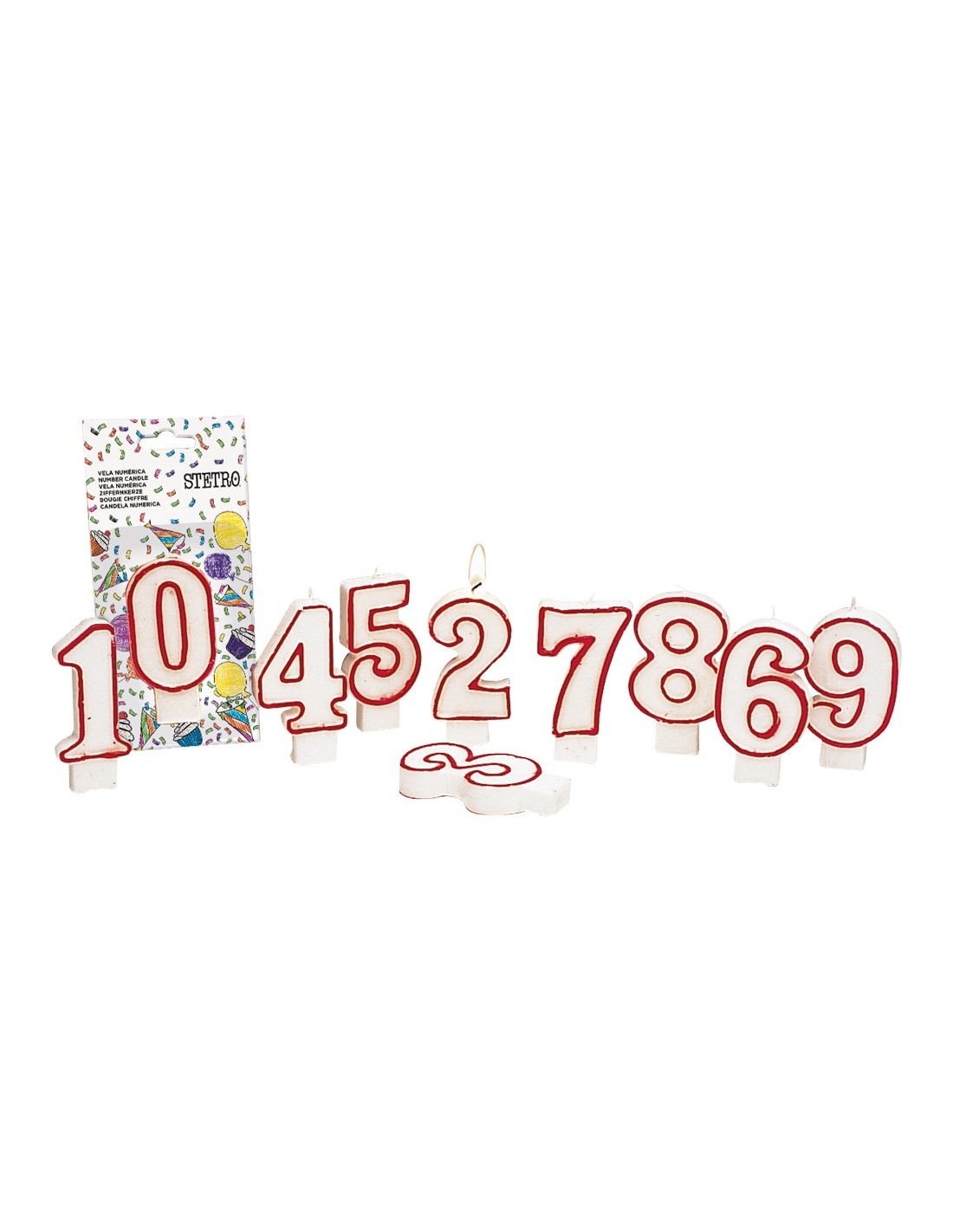 Vela para cumpleaños con forma de número. Presentación en blíster.