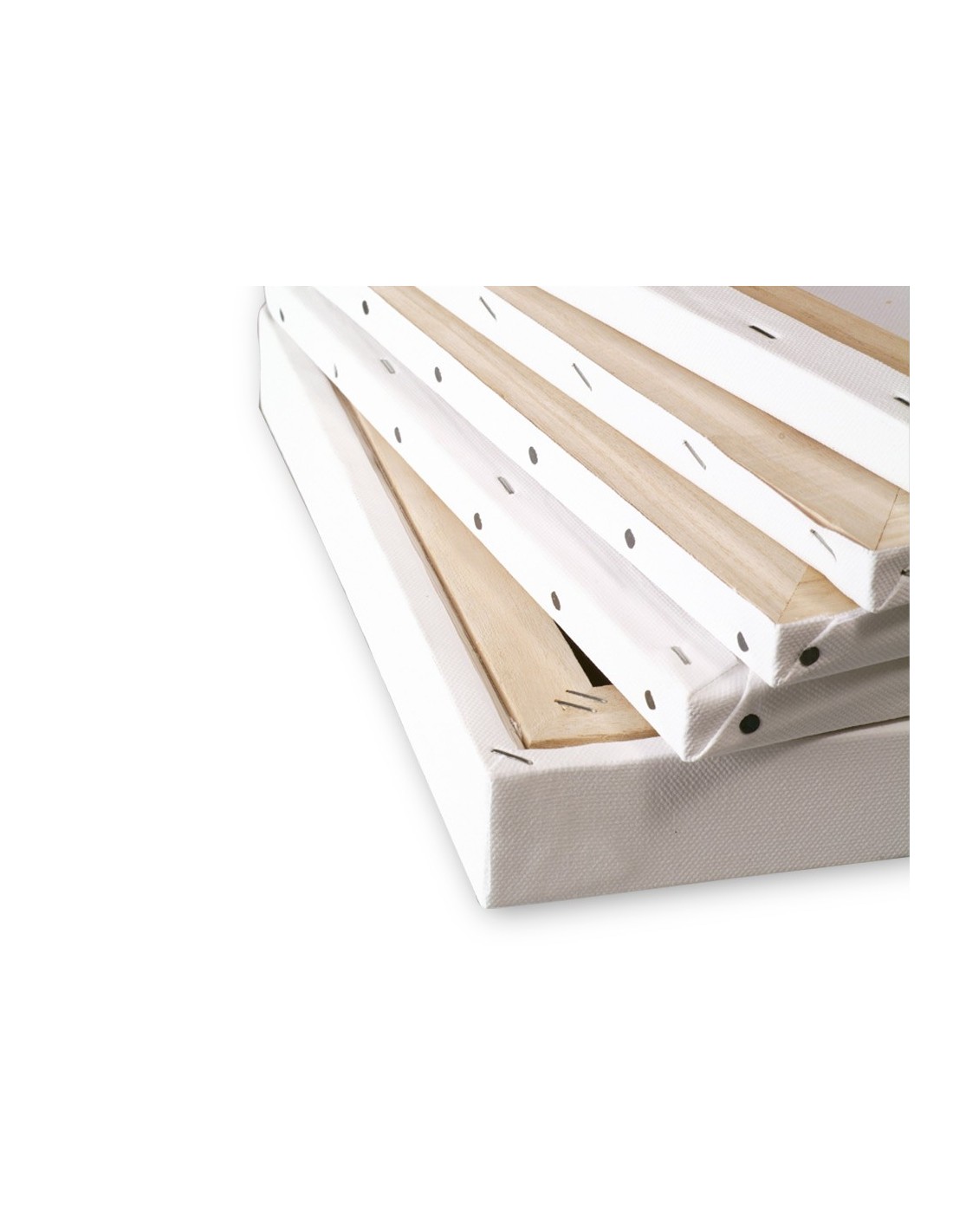 Lienzo grapado de tela de algodón 100%. Libre de cloro y ácido. 280 g/m². Apto para acrílico y óleo. Con bordes de madera.