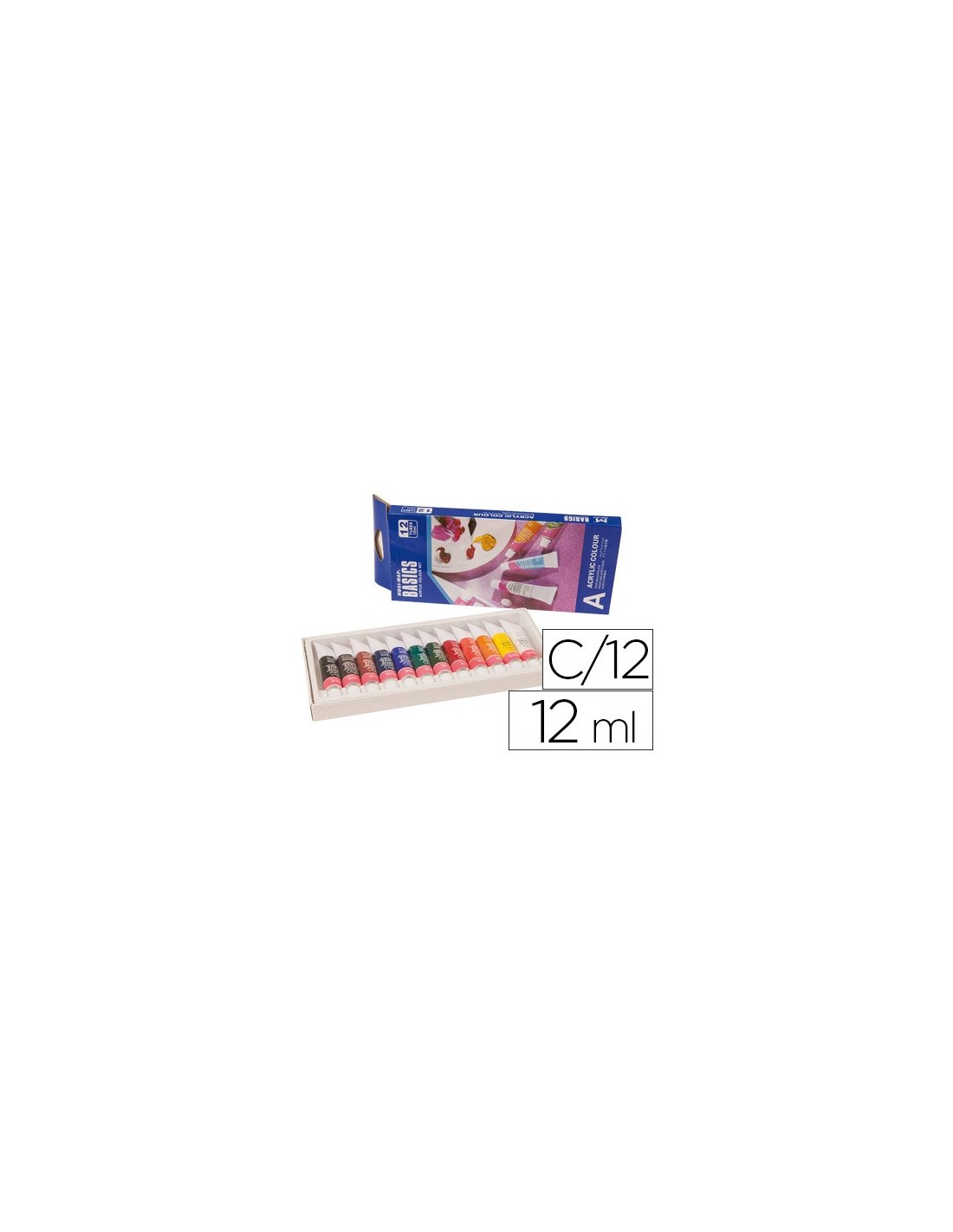Caja de cartón que incluye 12 tubos de colores surtidos. Estas pinturas acrílicas están formuladas con la técnica más innovadora y con una gran relación calidad/precio. Son permanentes al agua y de secado rápido, poseen una buena resistencia a la luz y una fuerte adhesión. Además, son respetuosas con el medio ambiente y no tóxicas, por lo cual son adecuadas para uso escolar.