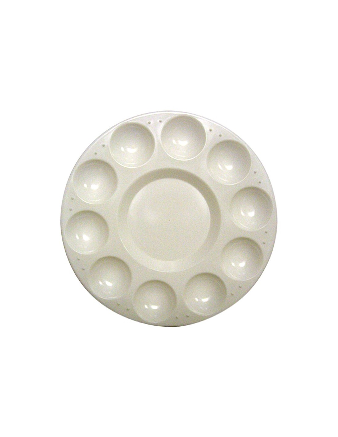 Paleta de plástico circular. 10 huecos. Para diestros y zurdos. Medidas: 17 cm de diámetro.