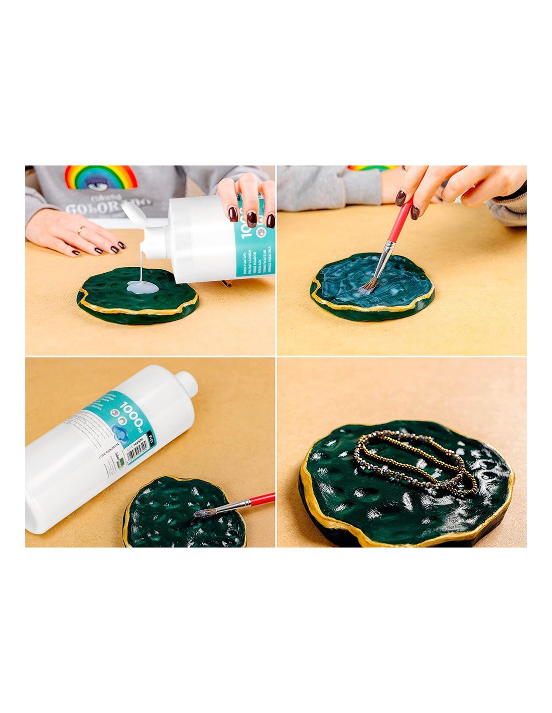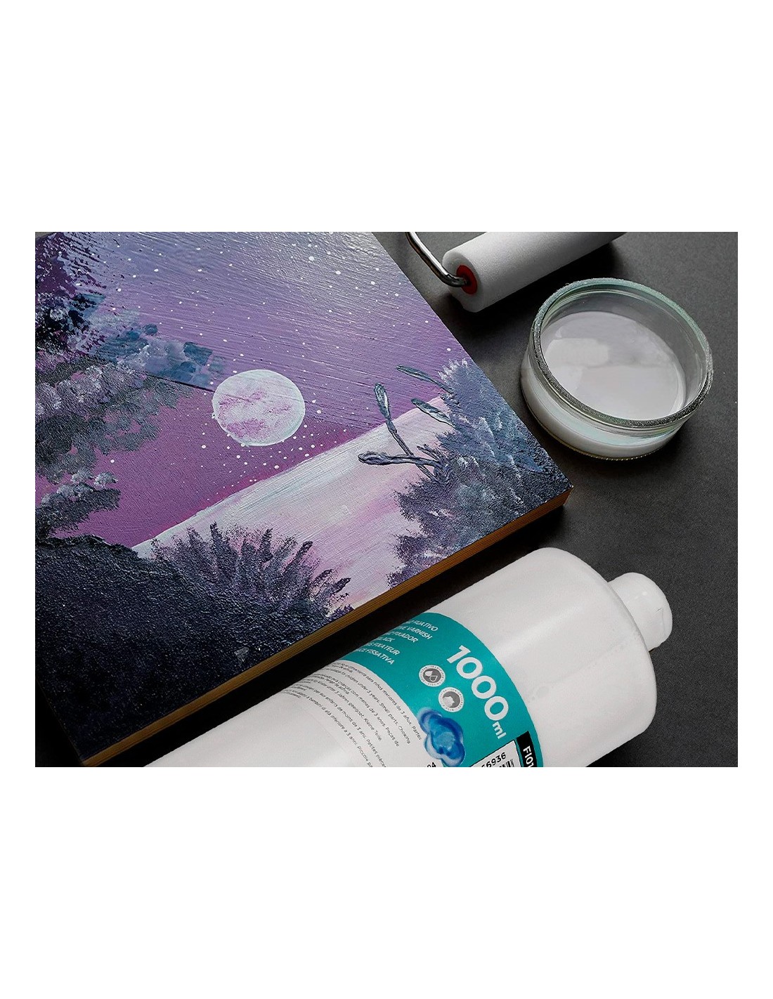 Fija y protege los dibujos de cera y tempera dándoles un acabado brillante. Apto para uso escolar. Los utensilios empleados basta enjuagarlos con agua al terminar. Bote de 1.000 ml.