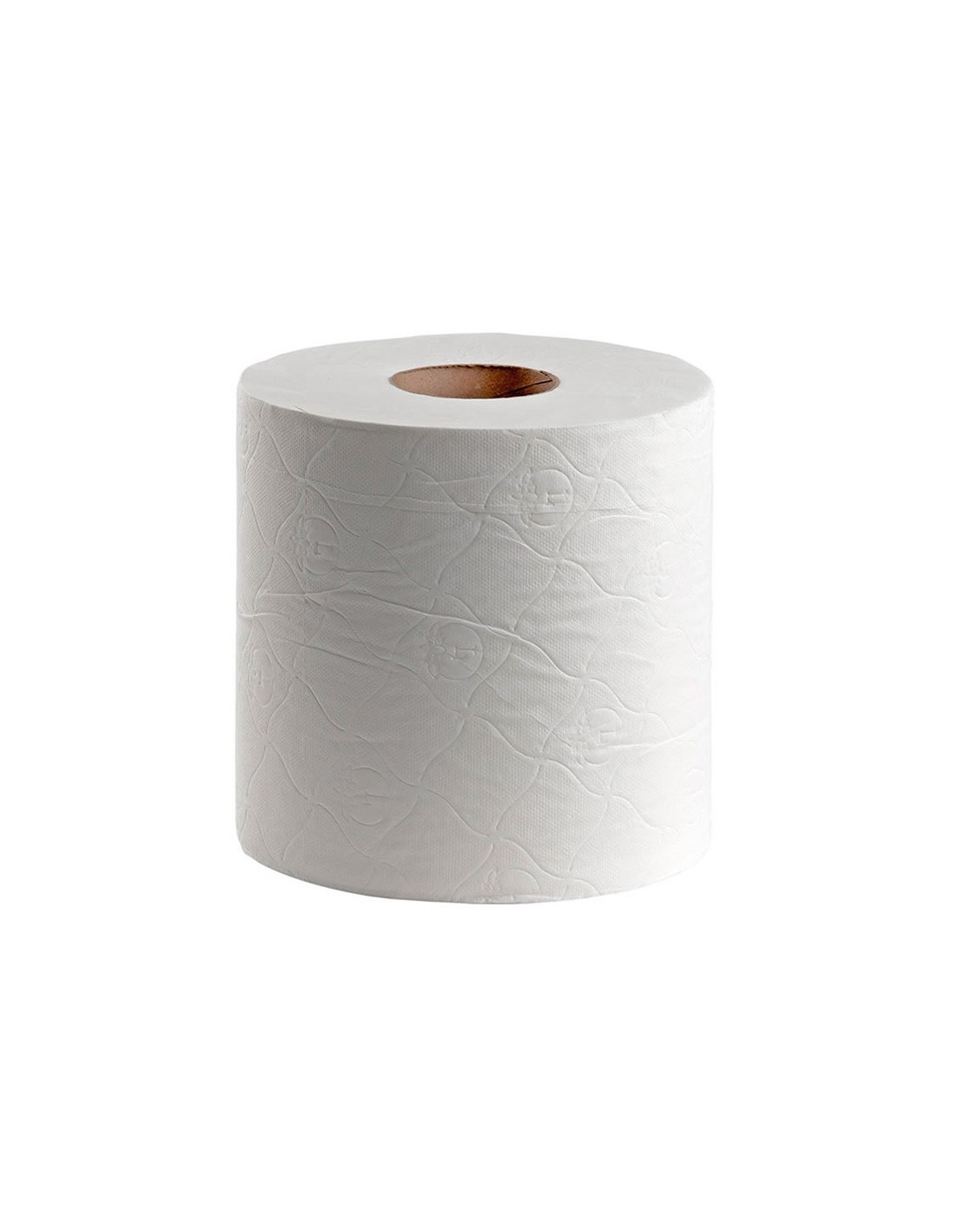 Papel secamanos. 2 capas. Celulosa gofrada virgen 100%. Medidas de la bobina: 195 mm x 145 m.