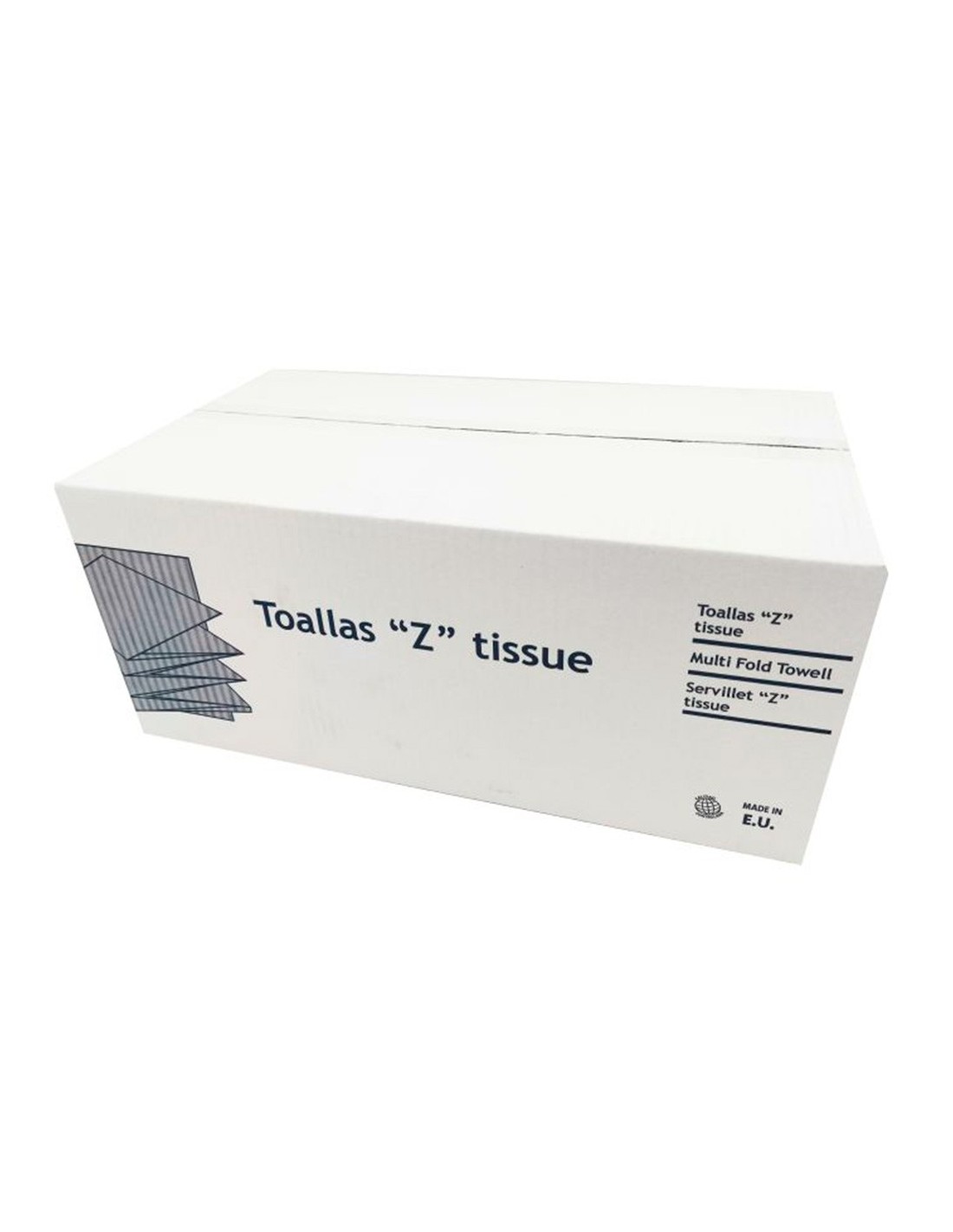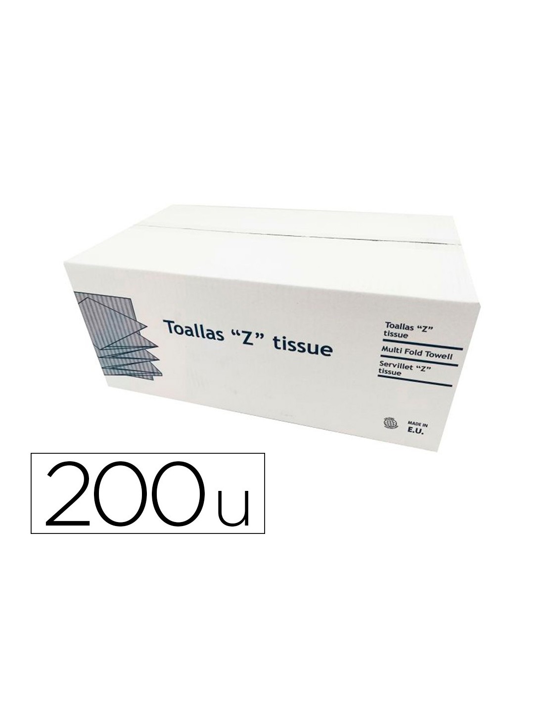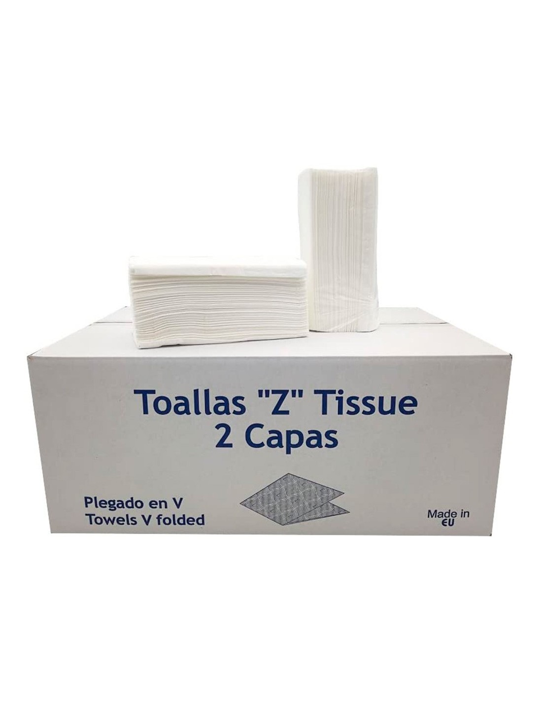 Toalla de papel secamanos. Plegado en Z. 2 capas. Caja con 20 paquetes de 200 unidades. Medidas: 225 x 210 mm.
