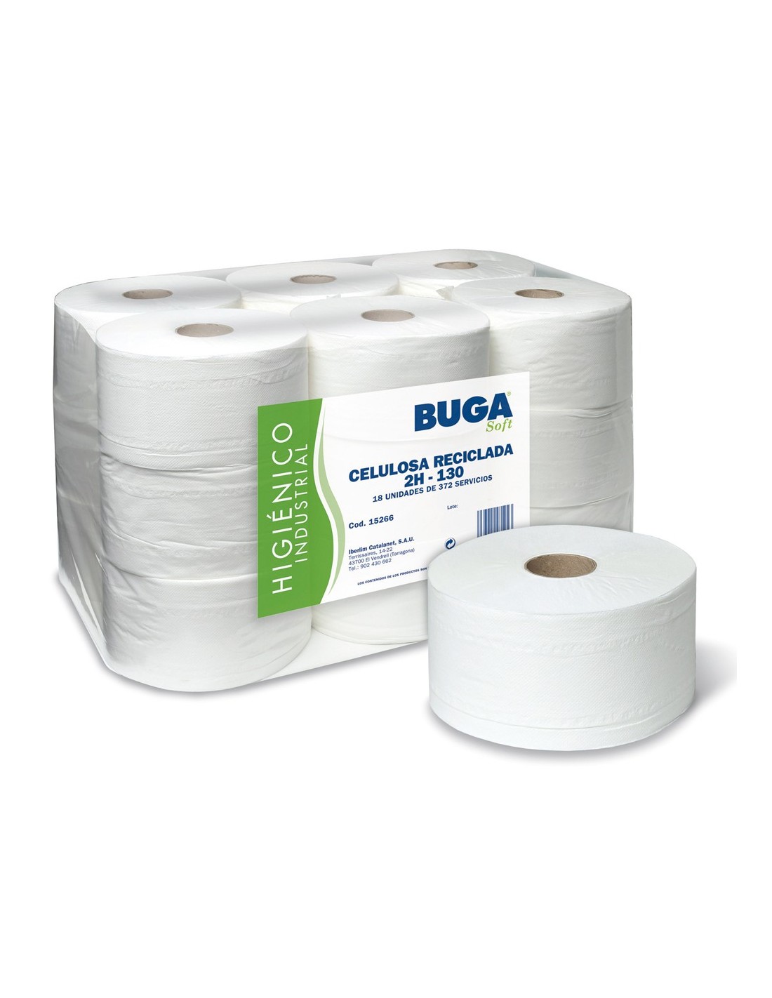 PAPEL HIGIENICO INDUSTRIAL GOFRADO BUGA RECICLADO 2 CAPAS 130 M