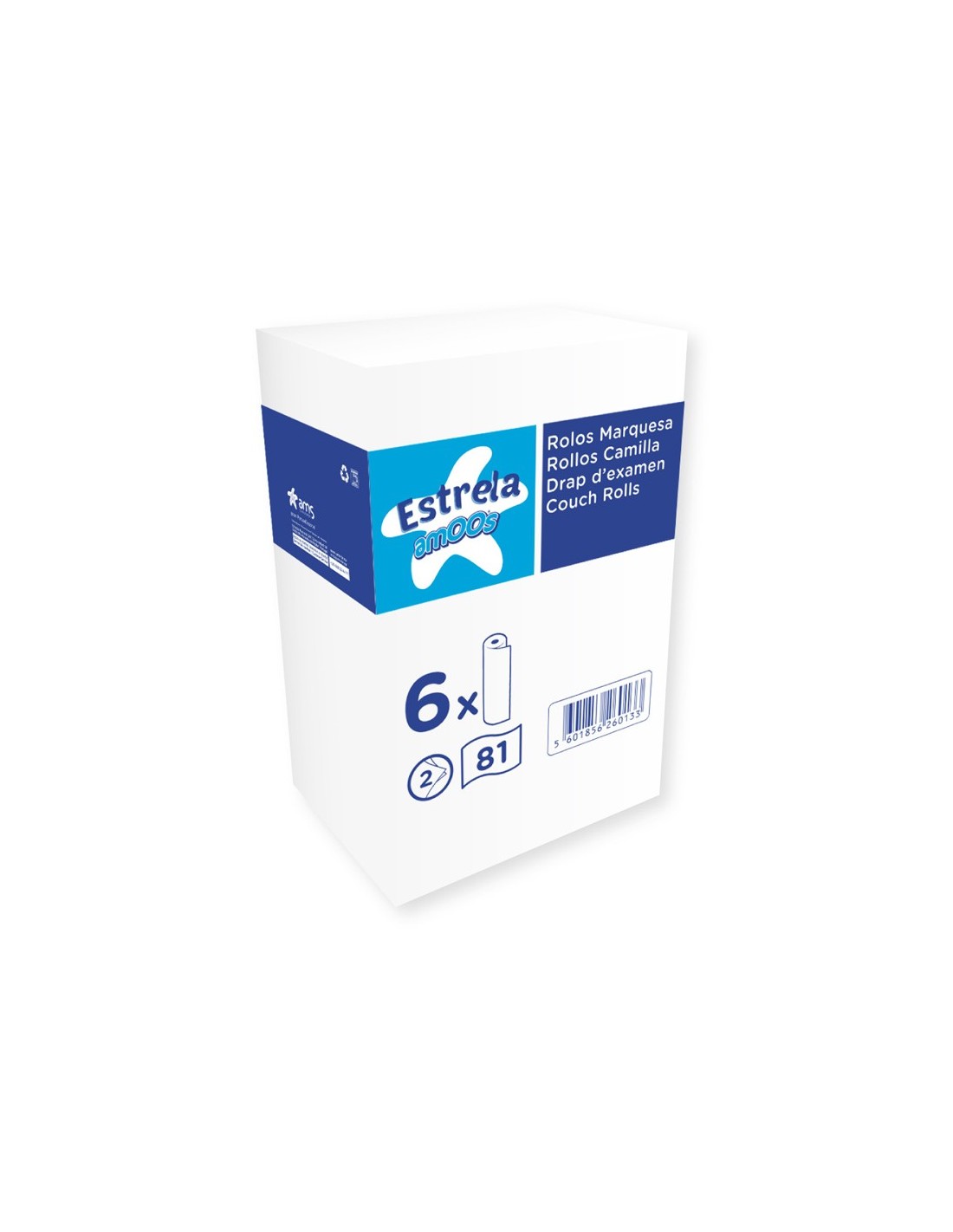ROLLO PAPEL PARA CAMILLAS AMOOS 2 CAPAS 81 SERVICIOS 590 MM X 60 M