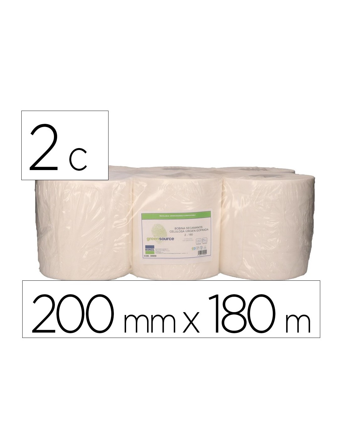 PAPEL SECAMANOS BUNZL GREENSOURCE 2CAP CELULOSA 200MMX180MT.6 ROLLOS